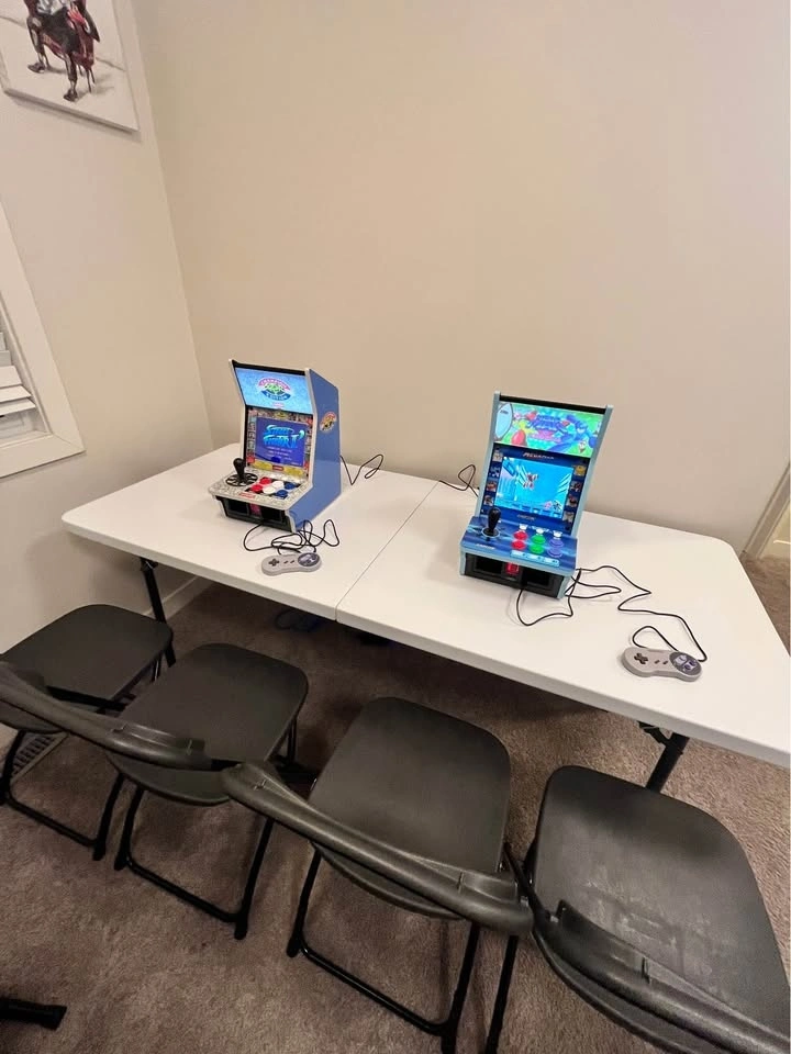 6 ft folding table & 4 folding chairs – ready-made arcade station setup
