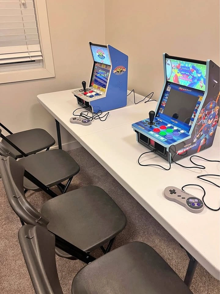 6 ft folding table & 4 folding chairs – ready-made arcade station setup