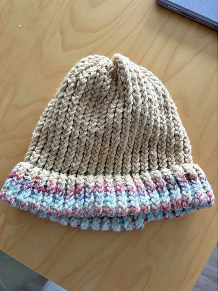 Just finished knitting this cozy little beanie โ perfect for the chilly days ahead. Warm tones + a splash of playful pastel on the brim ๐๐ Made with super soft yarn and lots of heart. Ideal for newborns or as a unique baby gift. Only $20.