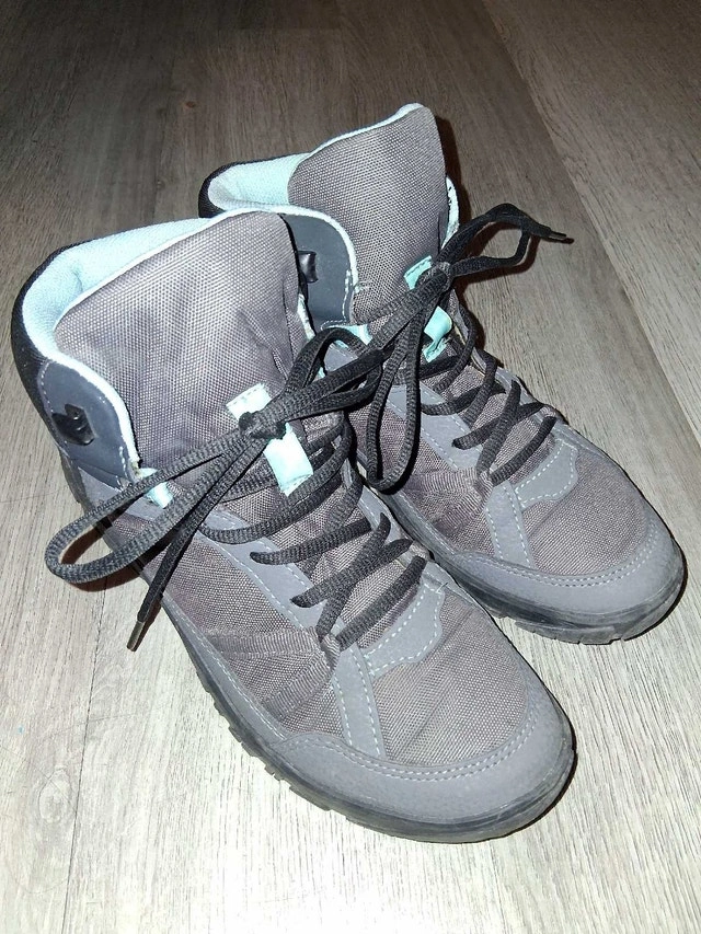 Step into adventure with these Quechua hiking boots, size 38! These boots have been my trusty companions on many trails, and while they show signs of wear, they're ready for many more adventures. The sturdy construction and comfortable fit make them ideal for hiking. They have provided great ankle support on tough trails, and I am sure they will be a good companion for you too. Brand: Quechua, Size: 38. Looking at similar boots on Kijiji, a fair price for these well-loved hiking boots is $35. If the ad's still up, the boots are available! Cash accepted.