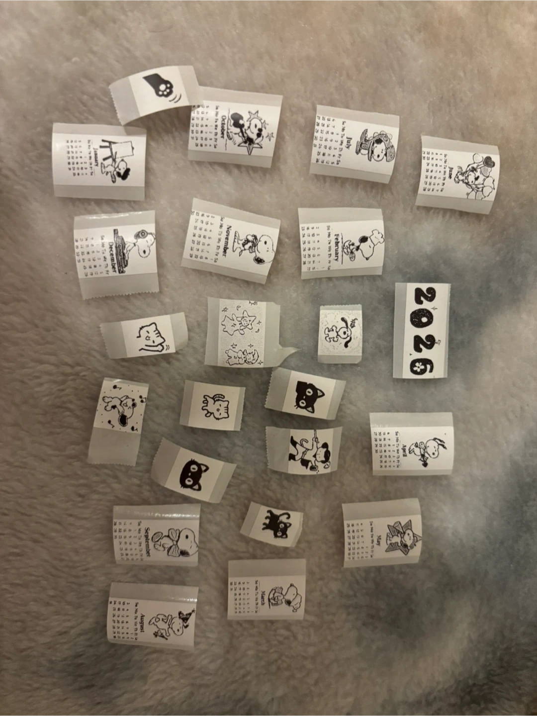 Set of small calendars featuring Snoopy and friends. Includes all months for 2026. Great for crafts or journaling! 0.50$ each! Also can do your design:)