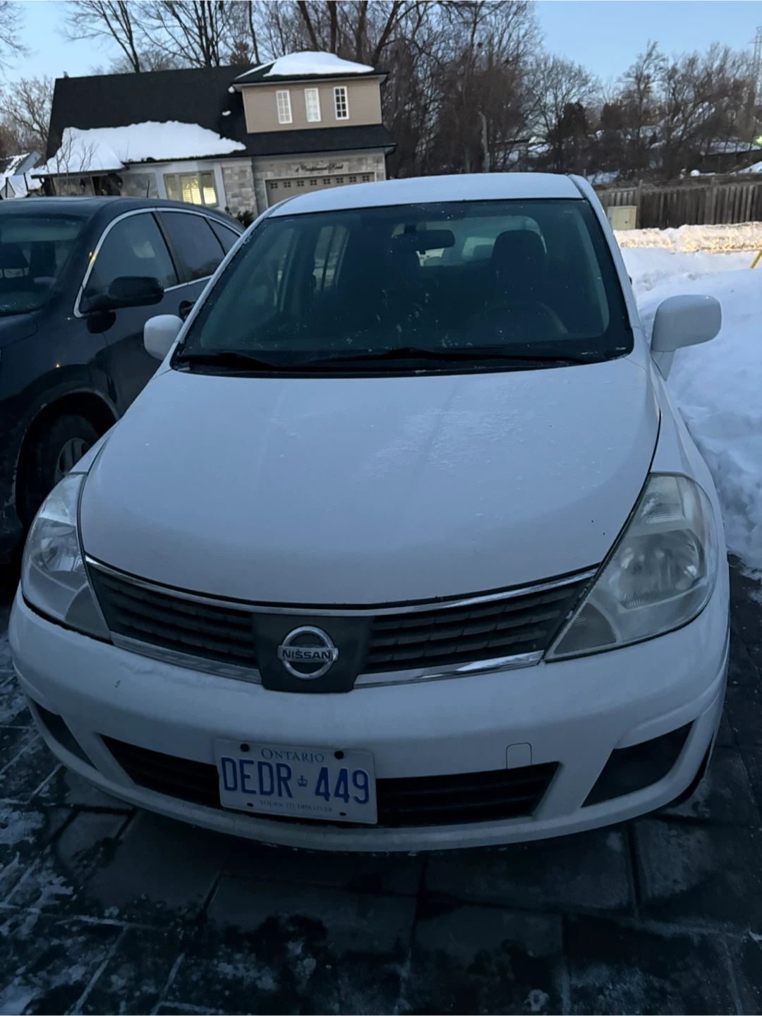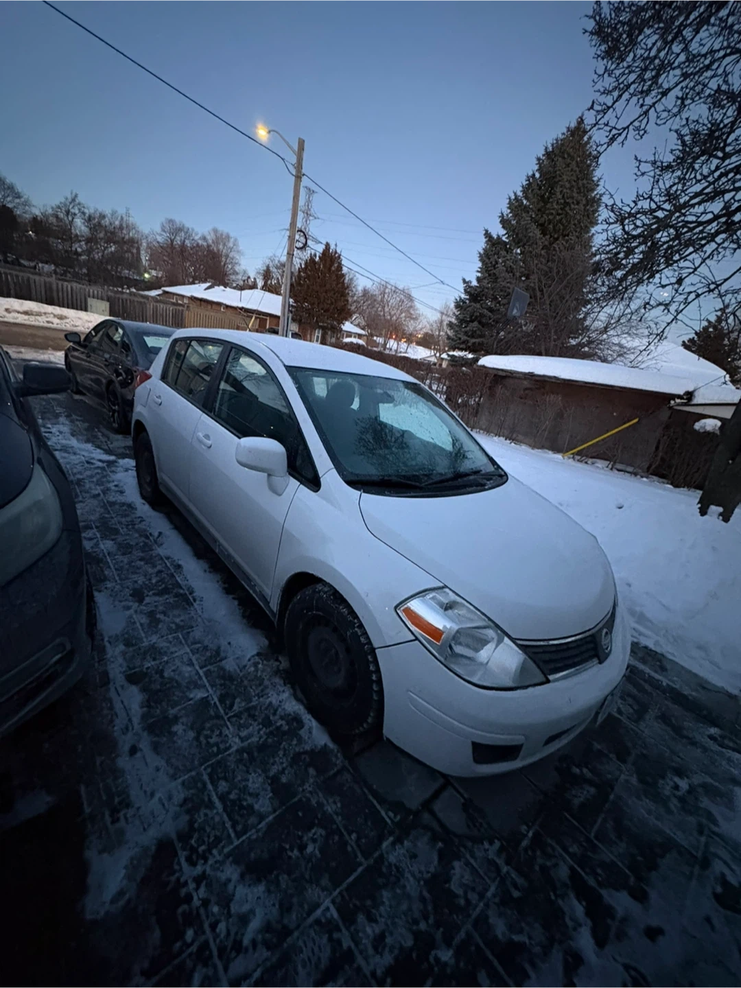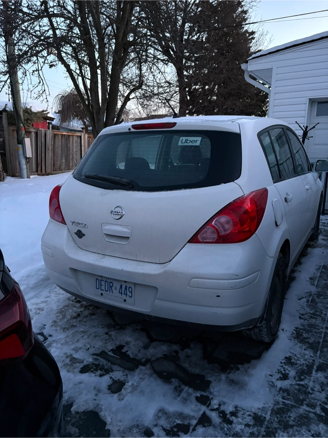 Selling a white Nissan Versa hatchback. It's a practical and fuel-efficient car. Plenty of space in the trunk for your cargo. Perfect for city driving or commuting!