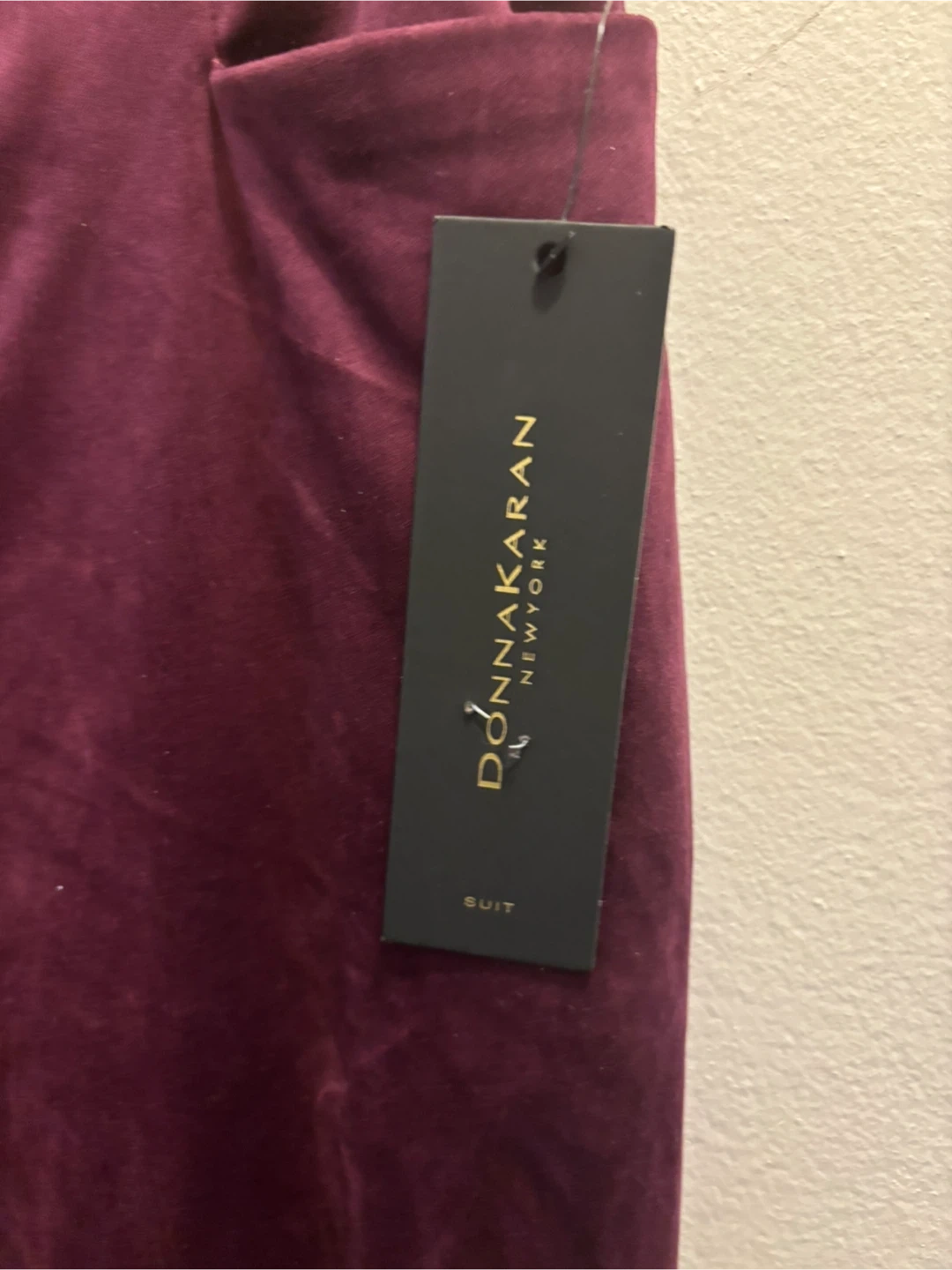 New with tags Donna Karan New York velvet pants in a deep burgundy color. These pants are a size 12. They're made from a soft velvet material.