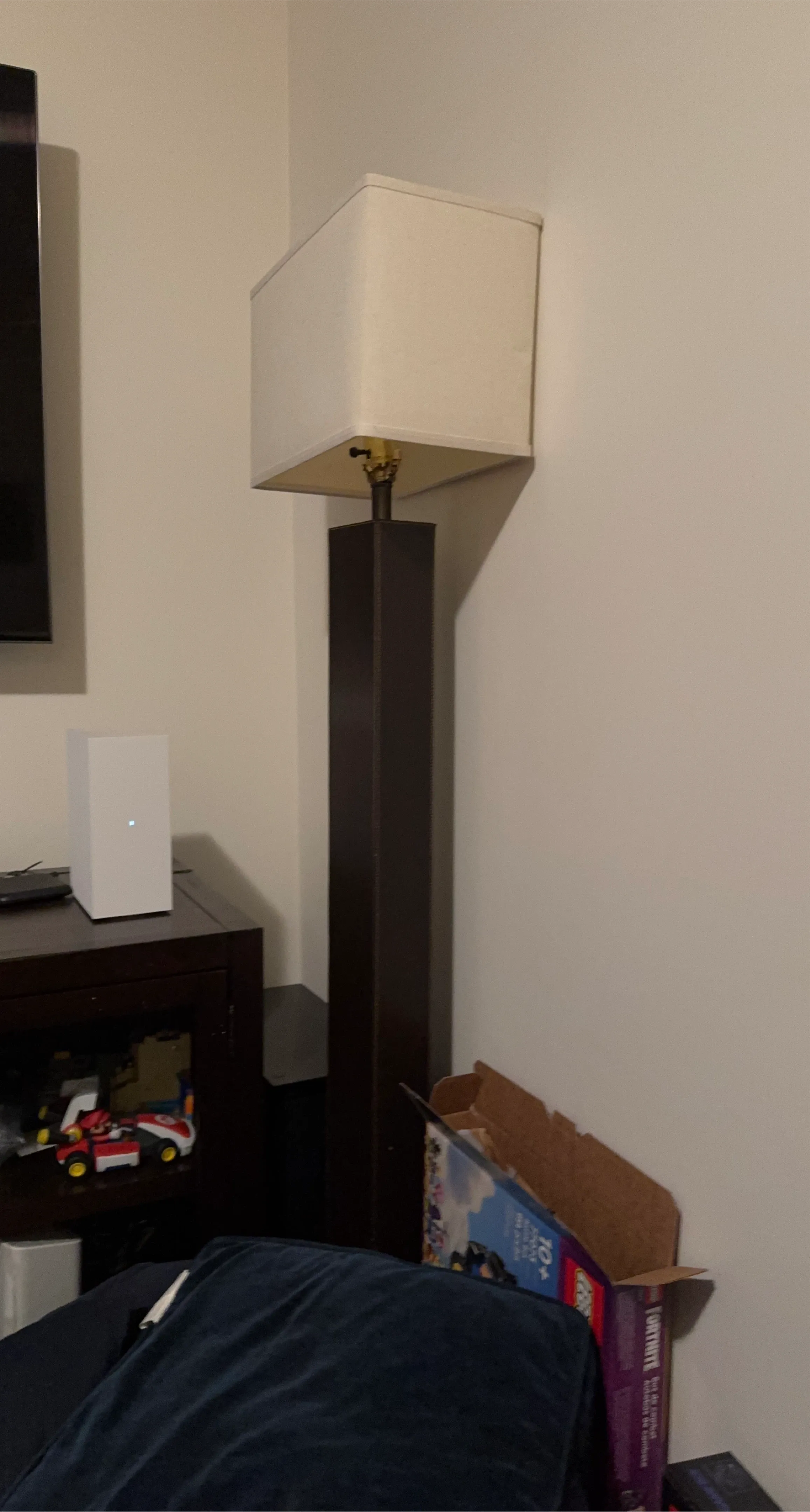 This floor lamp has a dark brown square base and stem. It comes with a cream-coloured square lampshade. It's a great addition to any room for ambient lighting. Add a touch of style to your living space!