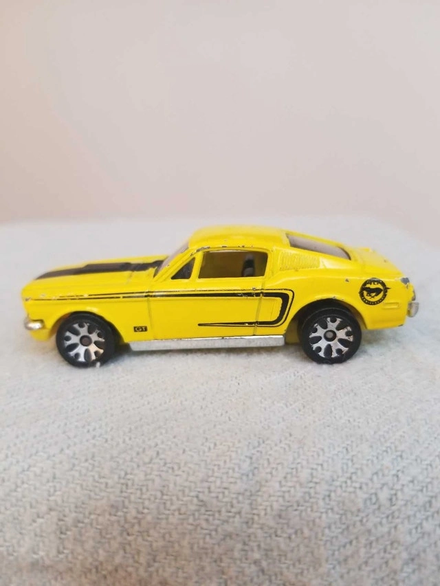 This Matchbox 1968 Ford Mustang GT diecast car is ready to find a new home! The car has a yellow body with black racing stripes, and the condition reflects that it has been lovingly enjoyed. Perfect for collectors or as a nostalgic piece for car enthusiasts. If the ad is up, the item is available! Cash accepted.