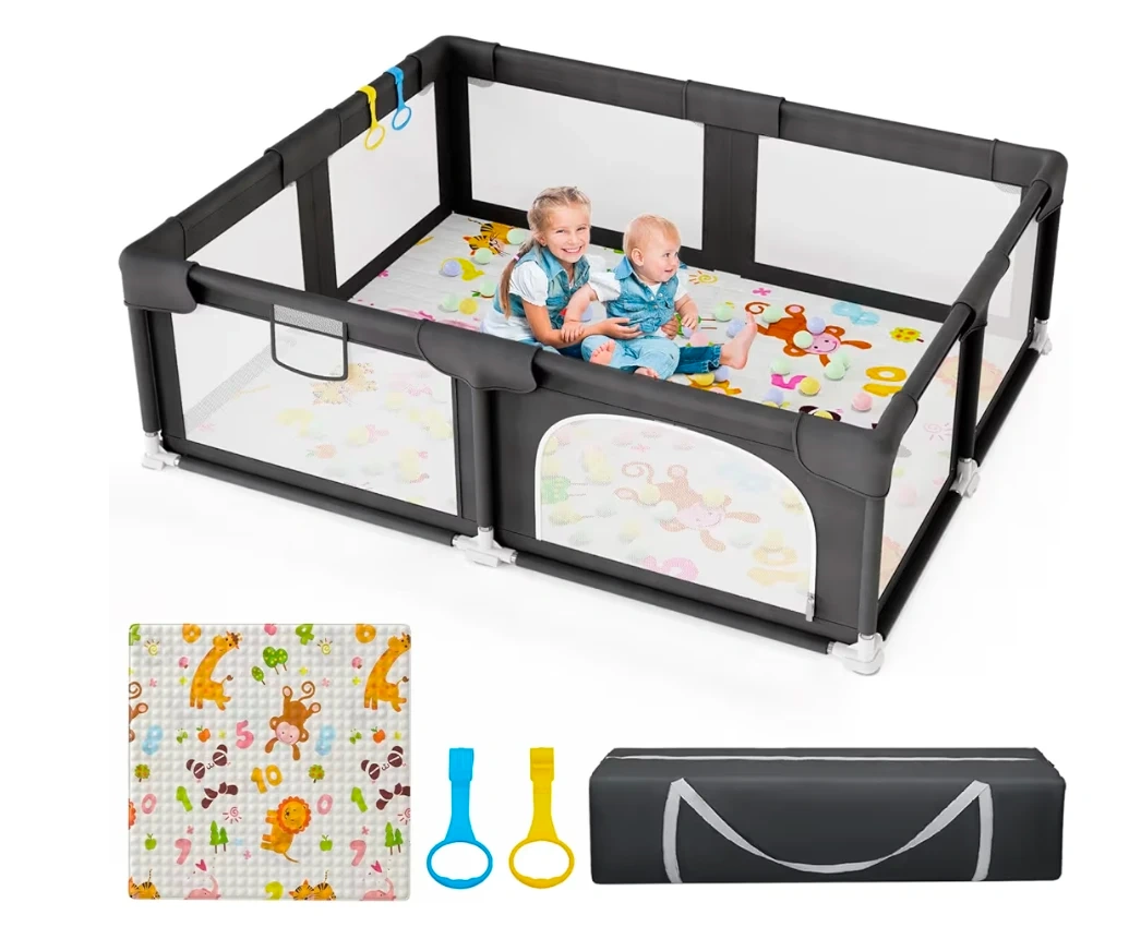 Palopalo Black Baby Playpen with Mat