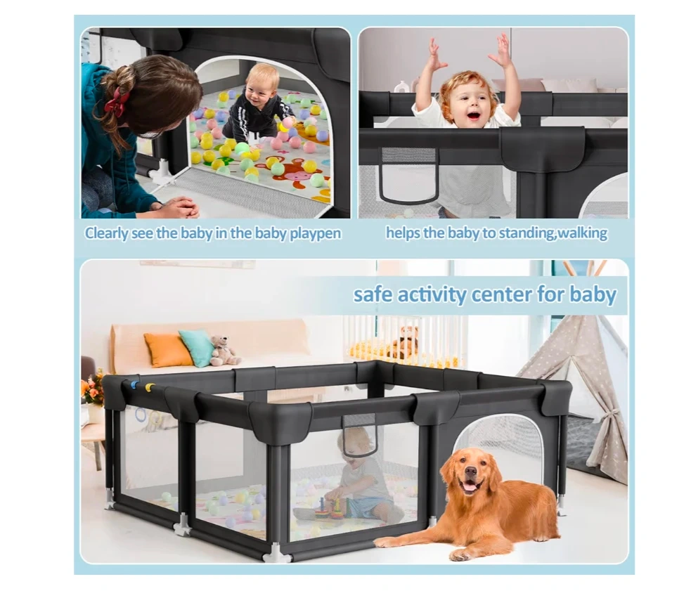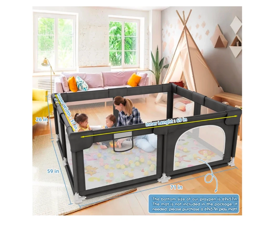 Palopalo Black Baby Playpen with Mat Playpen for Babies and Toddlers 71×59 Inch Large Play Yard With Gate Baby Fence Ball Pits Toddler Indoor Outdoor Infants Activity Center with Anti-Slip Base