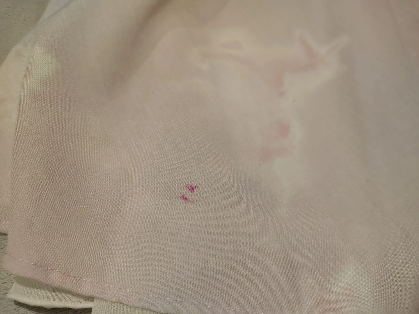 A cute skirt with a pastel cloud print. It features a ruffled waistband and a sheer hem with ruffled trim. There are some faint pink marks on the fabric, shown in picture but the skirt is so ruffled you don't see it. Has an underskirt which gives it lots of volume, no crinoline needed! Very cute coquette piece.