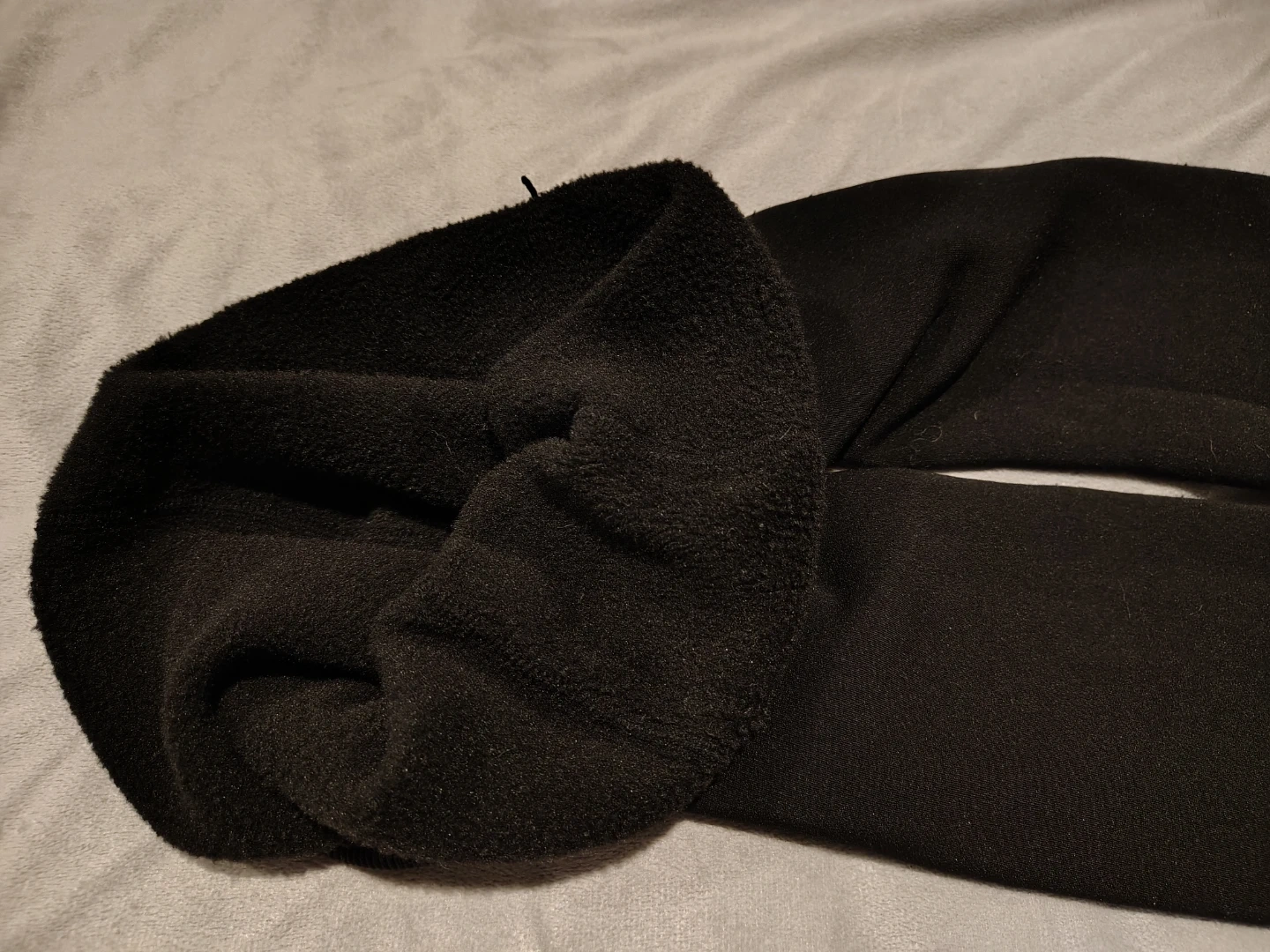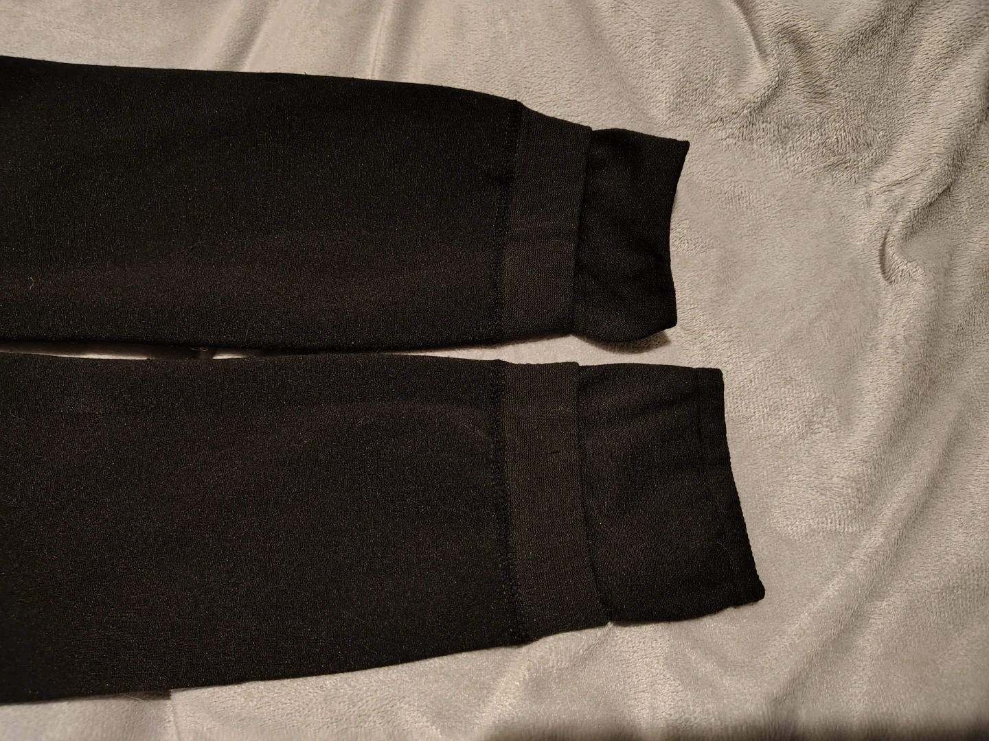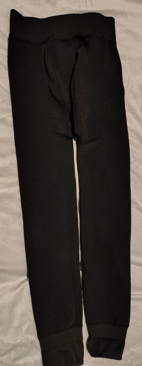 Cozy black leggings with a soft fleece lining for extra warmth. They're made from a stretchy material for a comfortable fit. Great for layering up on chilly days! Has a heel part to prevent them from sliding up. Opaque but I always wore a skirt over them due to them having the durable seams which made them look more like stockings. Worn a few times but I have other pairs now