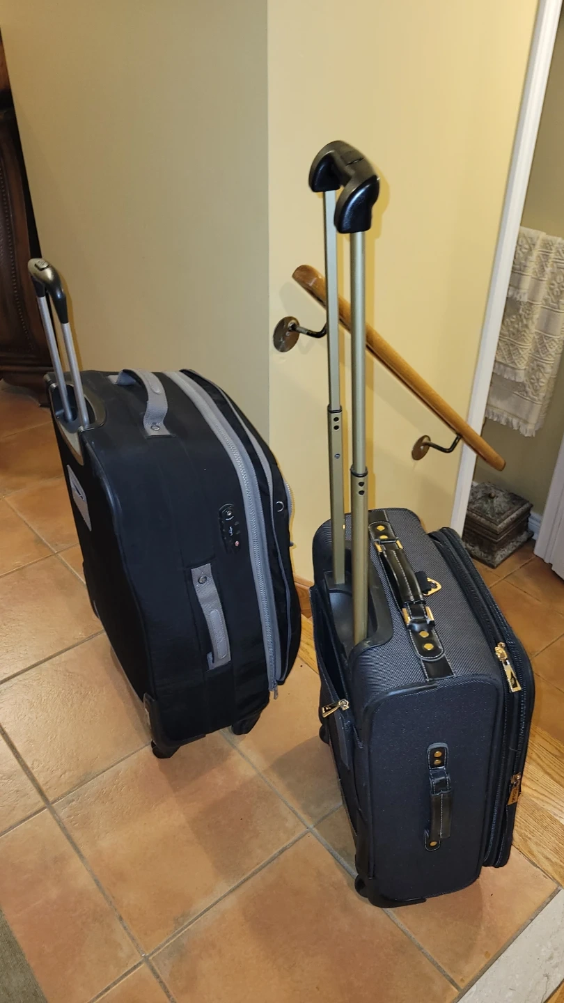 Two black rolling suitcases, very solid like new -$20 each. Both have telescopic handles and wheels. Great for travel!