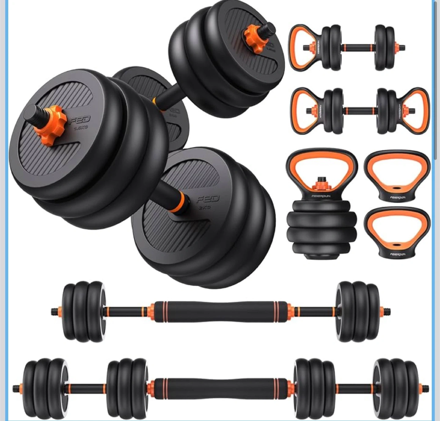 Buy & SellFEIERDUN Adjustable Dumbbells SetFEIERDUN Adjustable Dumbbells Set$69This is a FEIERDUN adjustable dumbbell set. It comes with multiple weights 4 plates weighing 2.5 pounds each 8 plates weighing 4.5 pound eachConditionNewWHERE TO MEETCheck LocationView MapSELLERverifiedalfieCfb651 review1 chats·3 favorites·24 viewsSEND CHAT TO SELLERHi alfie! I’m interested in your listing.Hi alfie! I’m interested in your listing.Get the Karrot app to chatSign In to chat