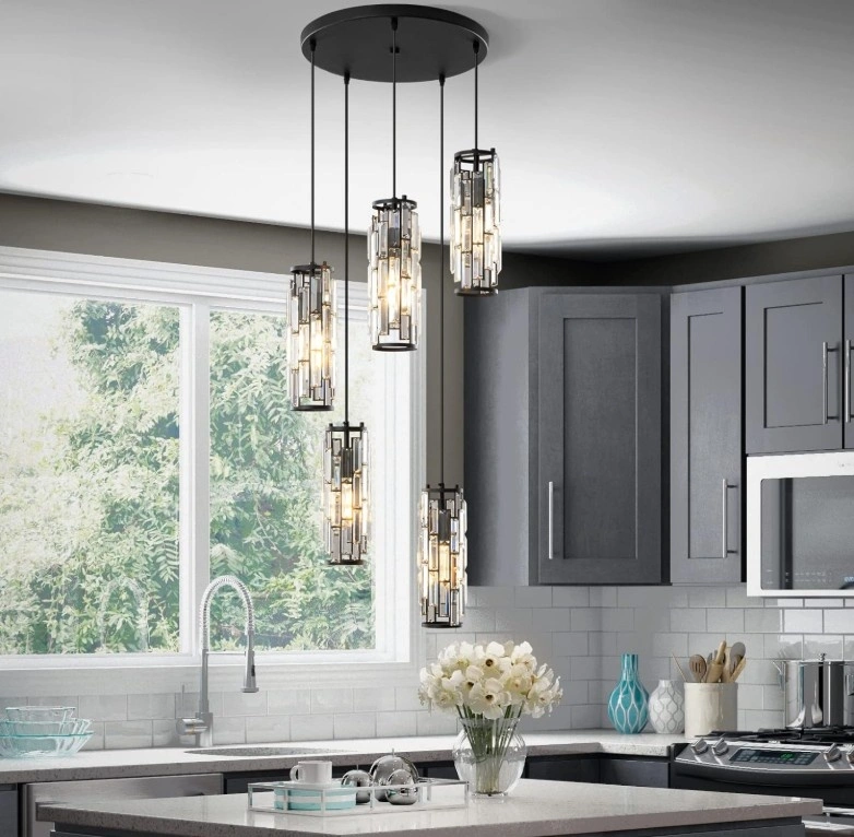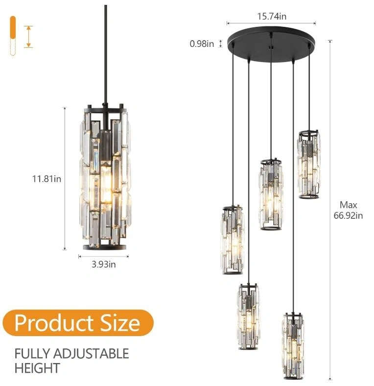LMQNINE Pendant Light, Black Modern Pendant Light Fixtures, Mini Crystal Chandeliers, Adjustable 5-Light Pendant Lighting for Kitchen Island Dinning Room Bedroom (Black 5-Light). This inspired design - The perfect combination of black finish metal and crystal brings charming retro and modern industrial charm, which matches most furniture styles and adds beautiful decoration to your home.