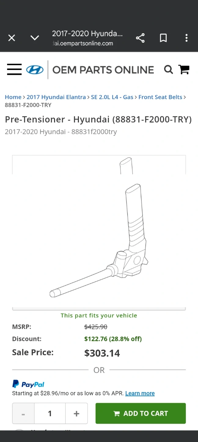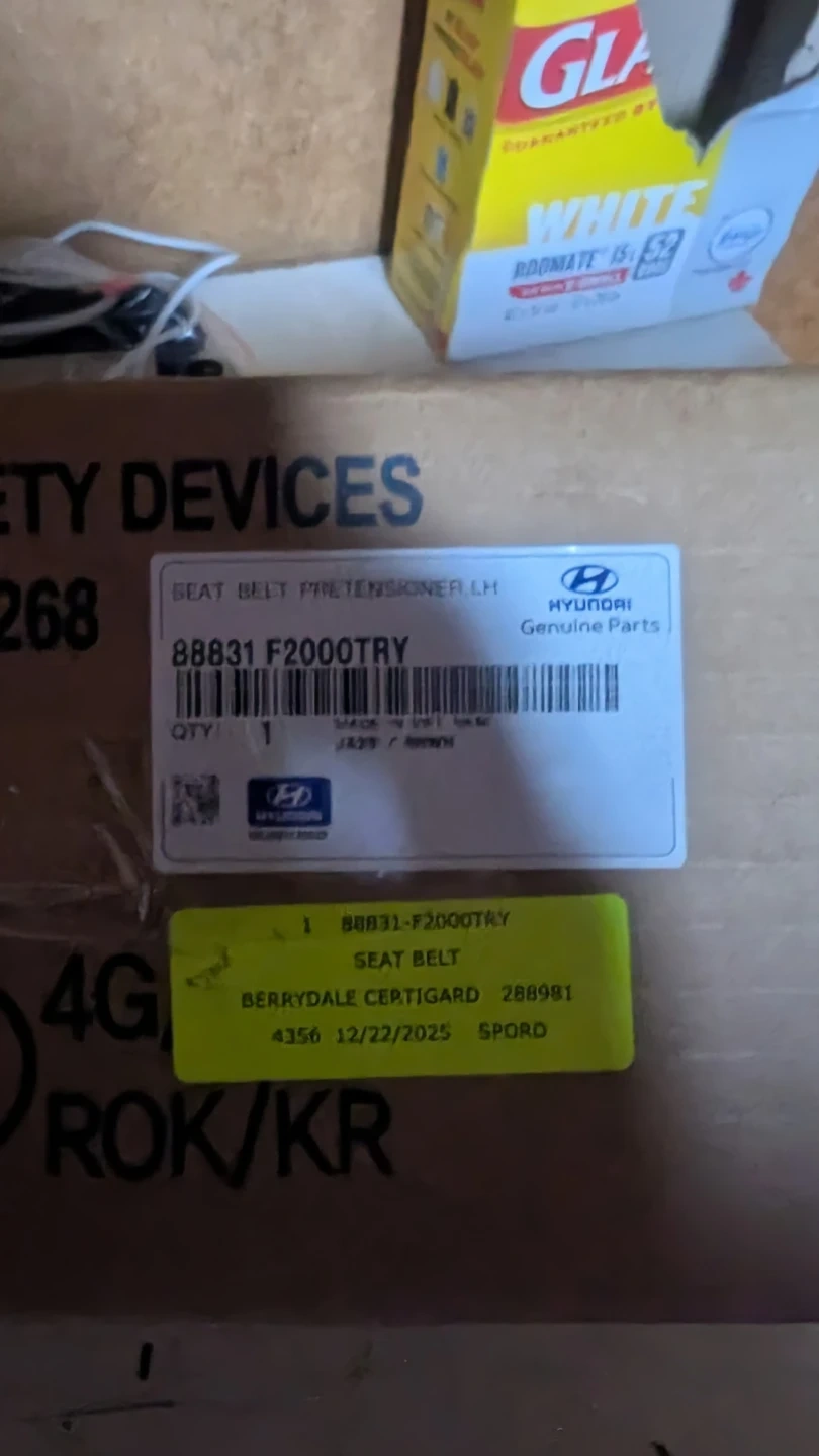 This is a new Hyundai Genuine Seat Belt Pre-Tensioner for the left-hand side. It's part number 88831-F2000TRY. This part is for 2017-2020 Hyundai Elantra models.