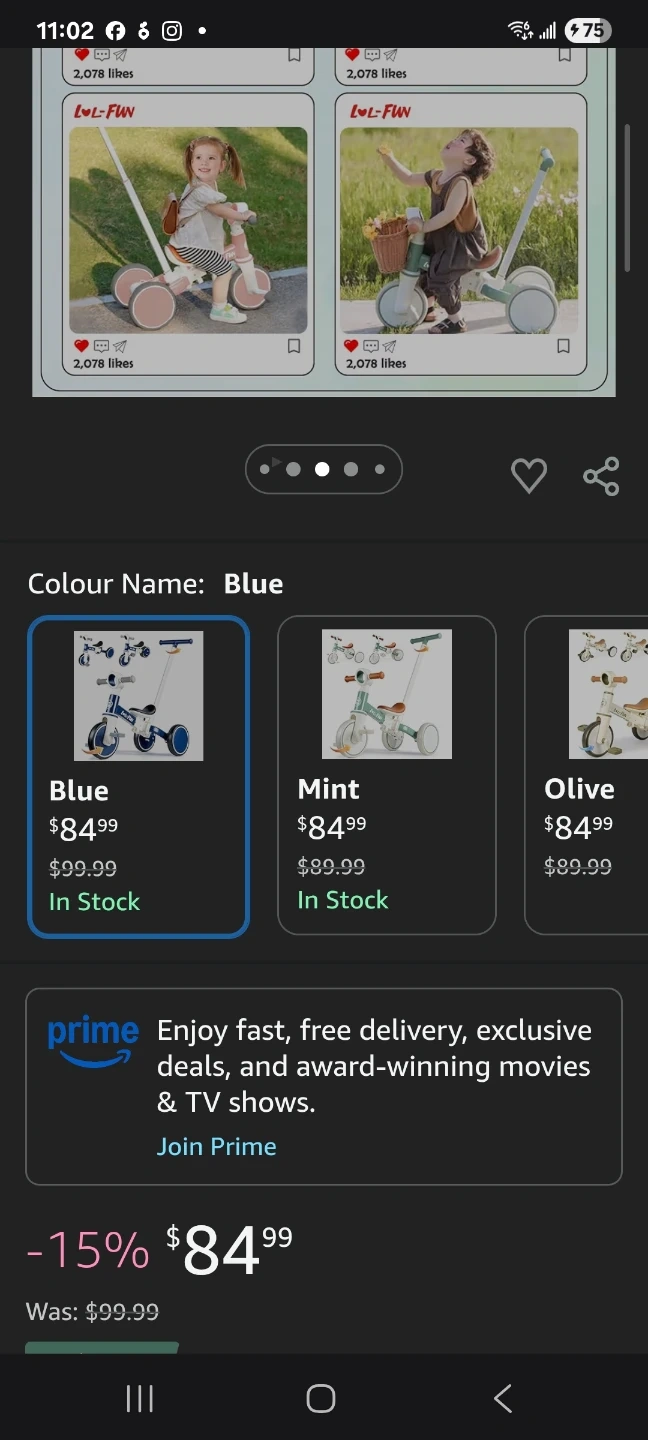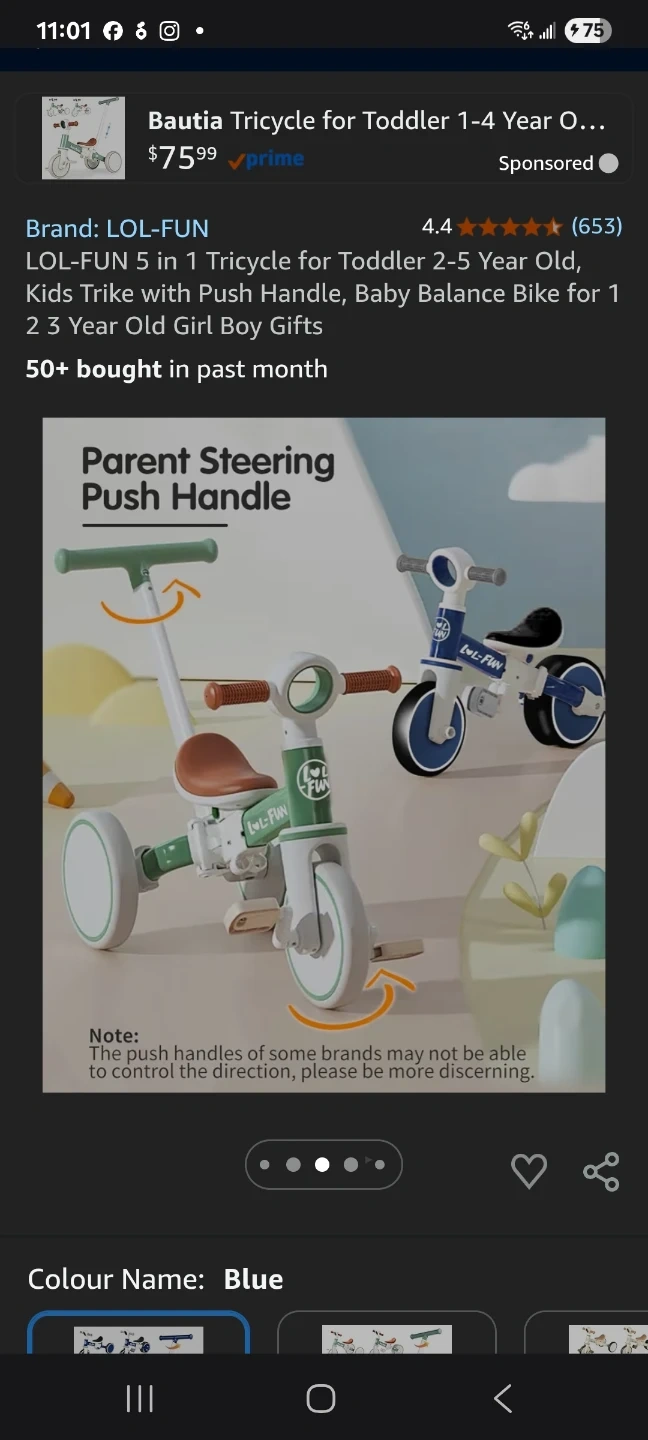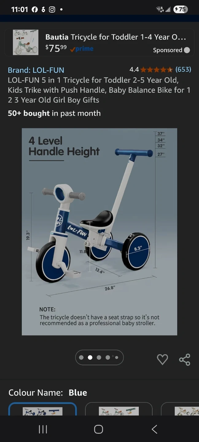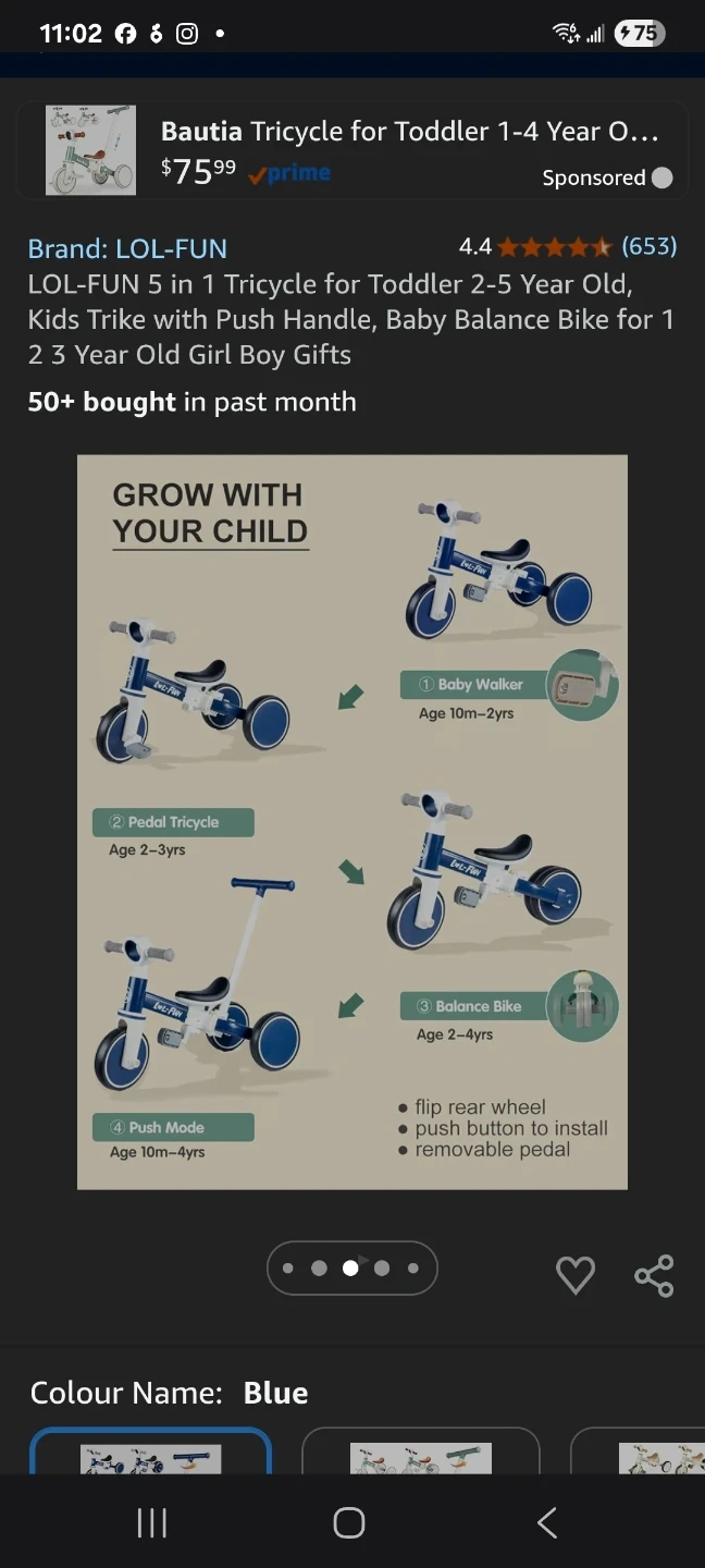 This LOL-FUN 5-in-1 tricycle transforms with your child's growth. It functions as a baby walker, pedal tricycle, balance bike, and push mode. The handle height adjusts up to 37 inches, and it features a removable pedal and flip rear wheel.
