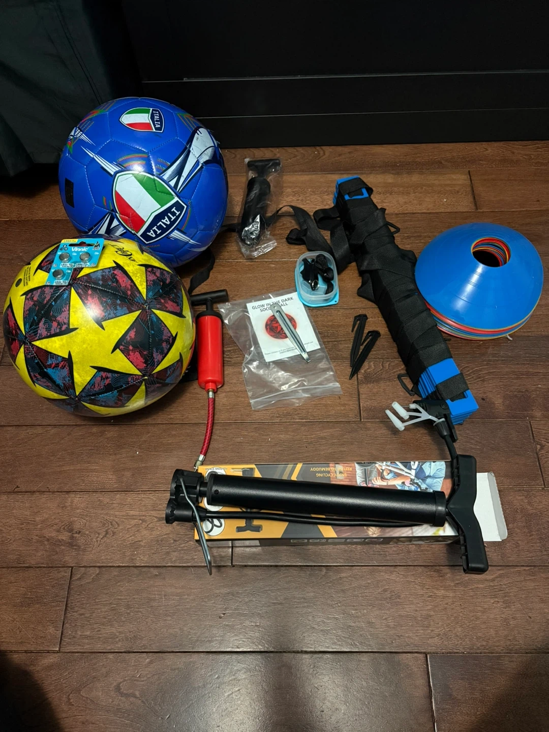 (Evry thing is new except the balls are used like in )🚨the photos ) the red ball lights when you kick it