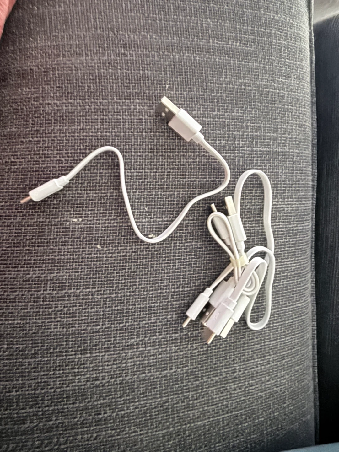 Selling a variety of white USB charging cables. Includes USB-A to USB-C, and USB-A to Micro-USB connectors. Useful for charging multiple devices.