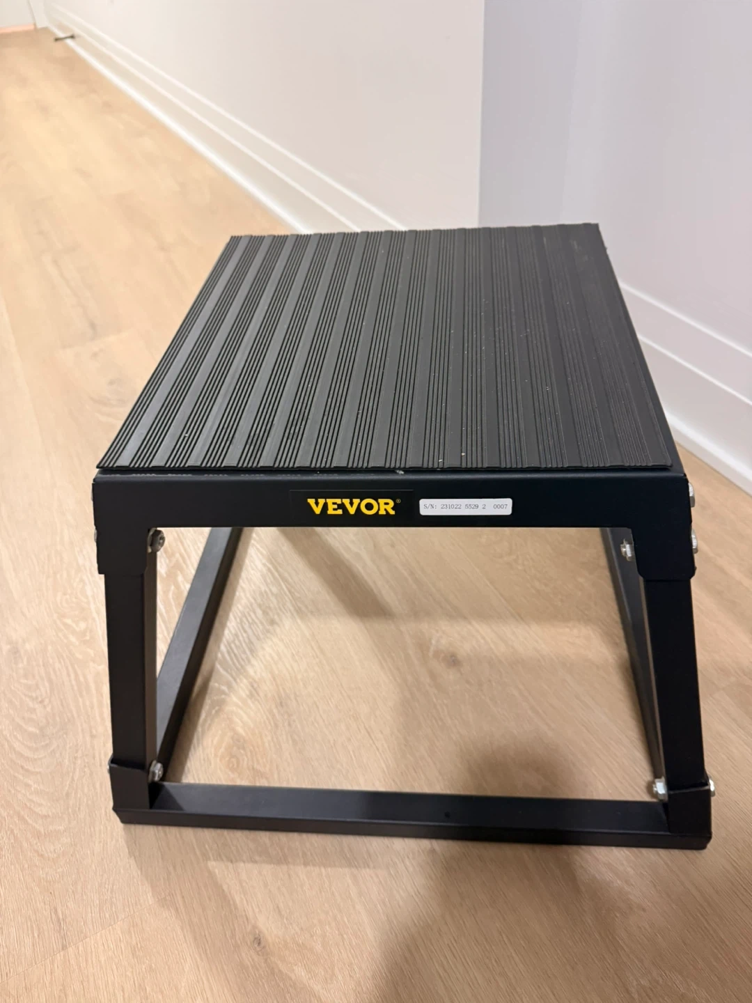 This VEVOR plyometric box is made of durable metal construction. It has a black, anti-slip silicone tread for enhanced grip. The box has a maximum weight capacity of 500 lbs. It's useful for plyometric exercises and cross-training.