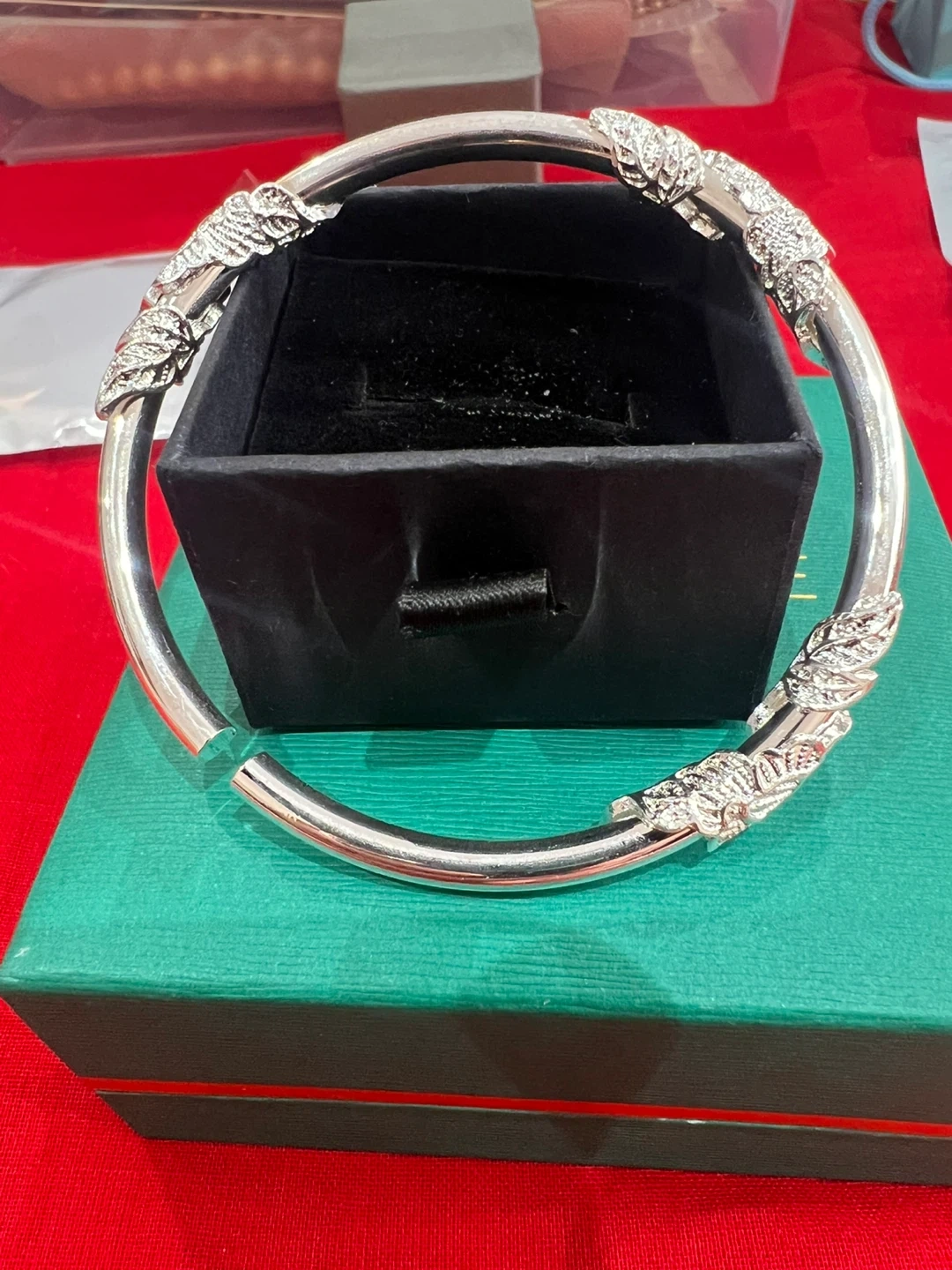 Silver plated Leaf Design Bangle Bracelet