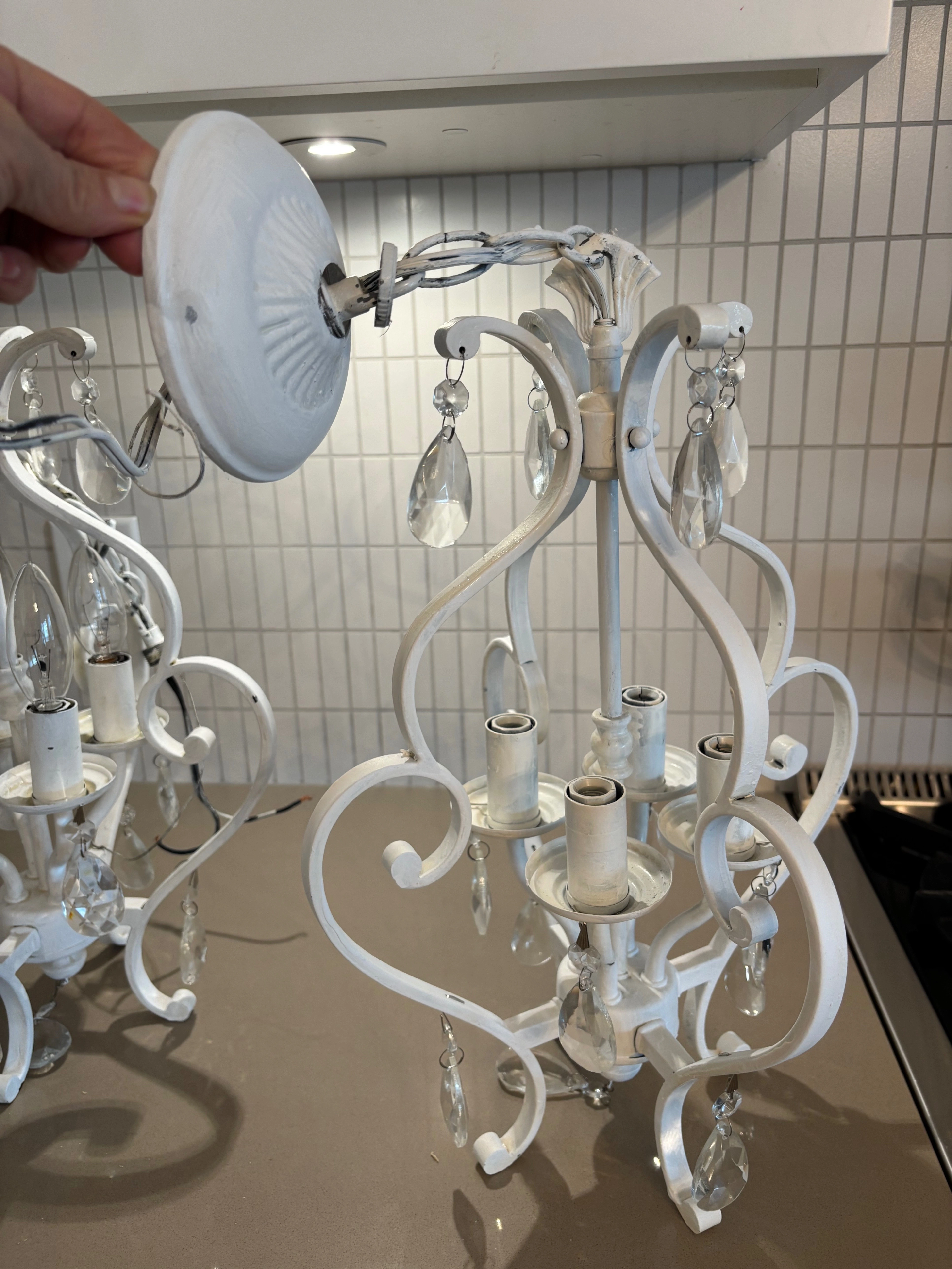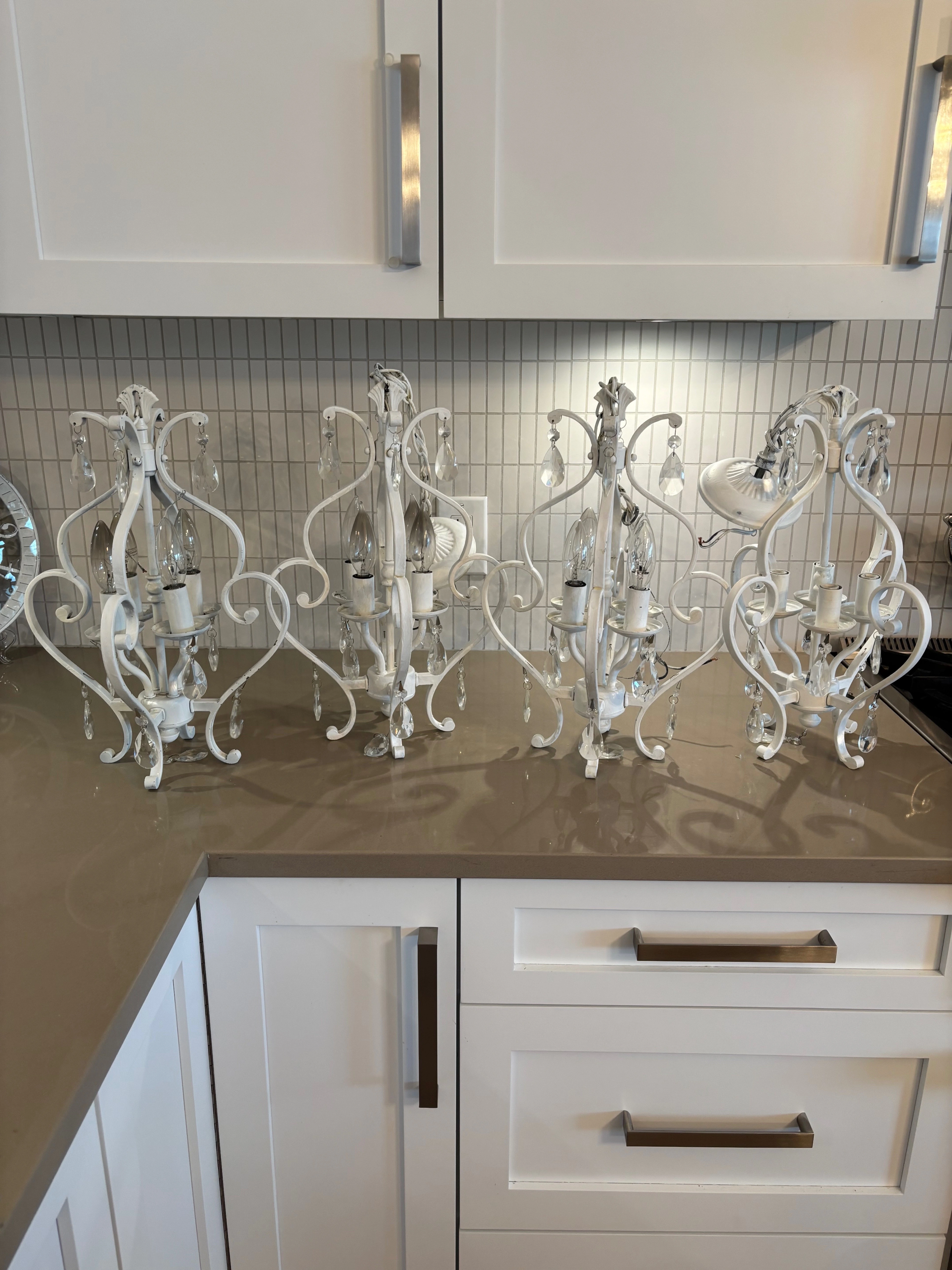 I have four of the same chandelier. Each chandelier is $75 each or all four for $250.00.