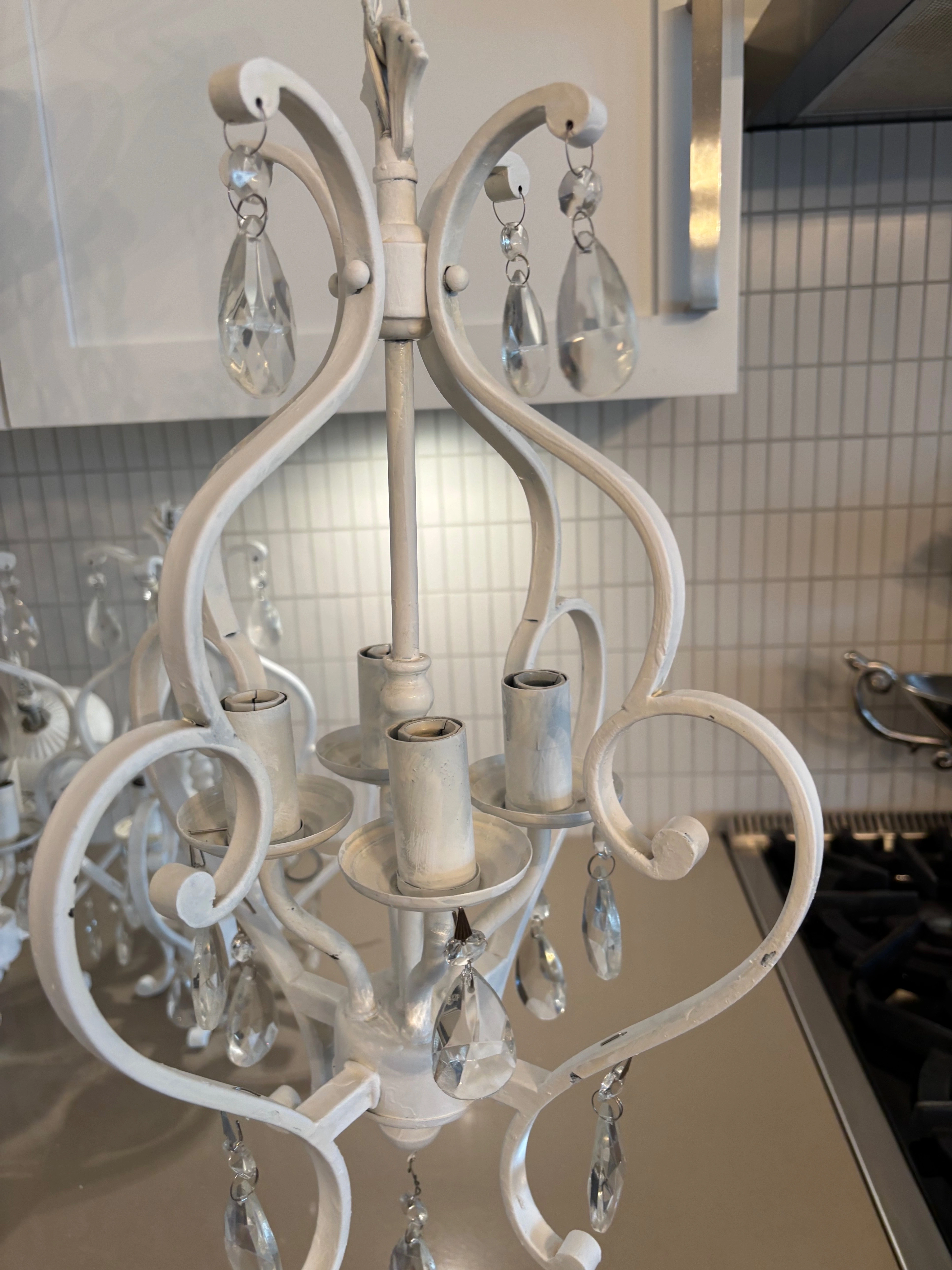 Distressed white metal crystal chandelier