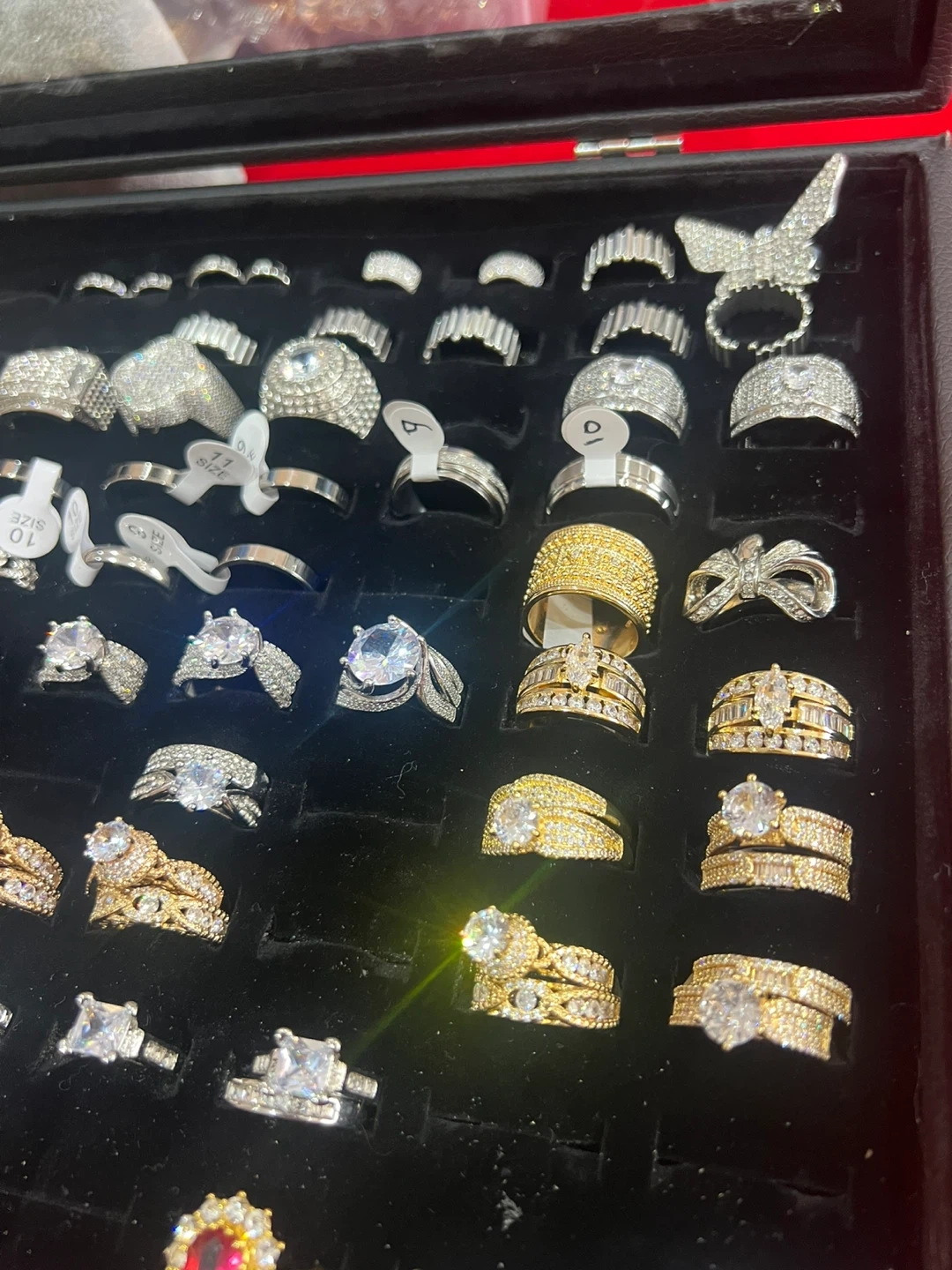 Variety of dazzling fashion rings available. Styles include solitaire, band, and statement pieces. Various sizes are included in this collection. These rings are perfect for adding a touch of sparkle to any outfit!