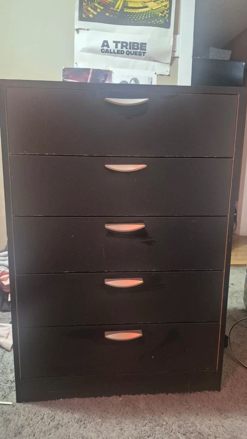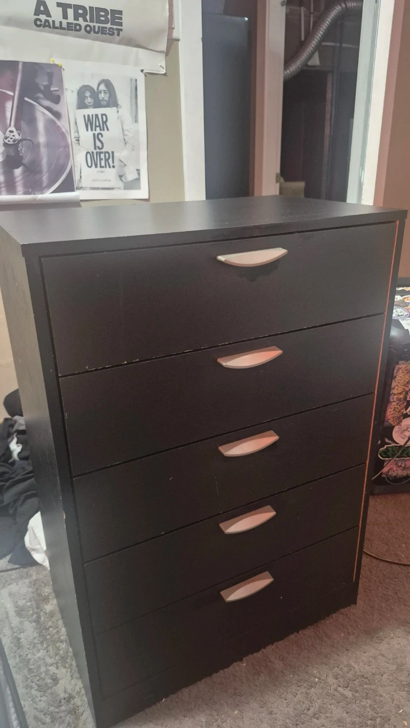 Buy & SellBlack 5-Drawer DresserBlack 5-Drawer Dresser$50This is a black dresser with five drawers. It's a handy piece for storing clothes or other items. The drawers have light-coloured handles.WHERE TO MEETsaddletownView MapSELLERverifiedReeseNortheast Calgary670 reviews3 chats·1 favorites·30 viewsSEND CHAT TO SELLERHi Reese! I’m interested in your listing.Hi Reese! I’m interested in your listing.Get the Karrot app to chatSign In to chat