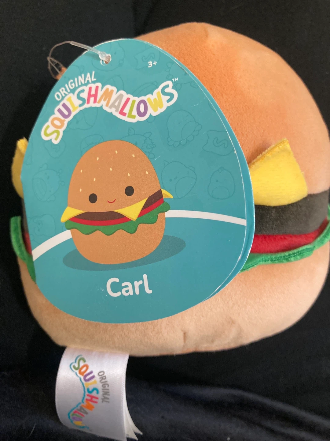 This is Carl the Hamburger Squishmallow plush toy. It's super soft and cuddly. He's a great addition to any Squishmallow collection!
