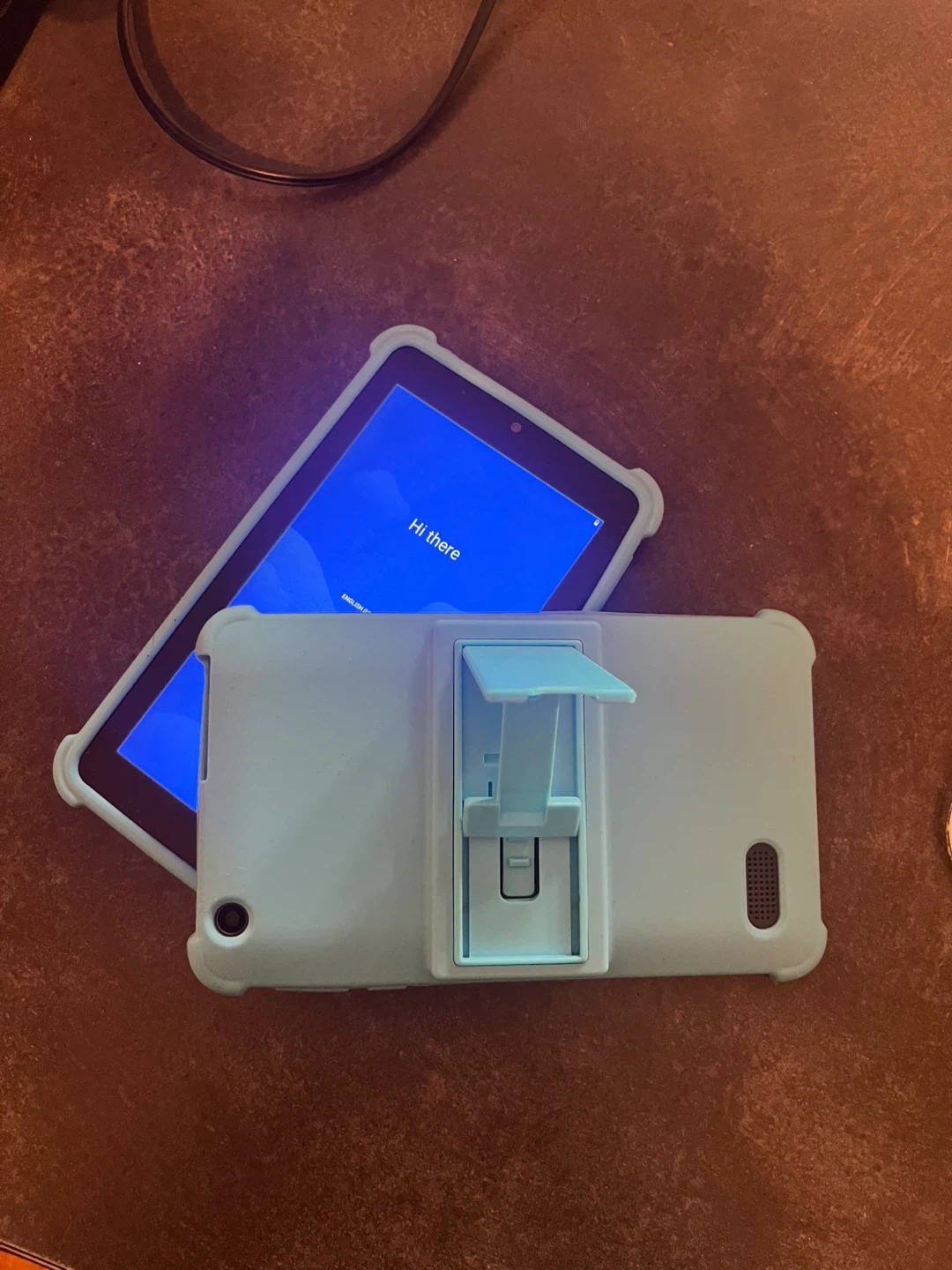 I have two 10” kids tablets purchased from Amazon with blue cases designed for kids. Each case features a built-in kickstand for hands-free viewing. Great for travel or home use! My kids loved them just don’t use them anymore. $20 each obo