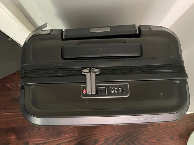 Selling an authentic Samsonite Evoa Z Spinner Carry-On suitcase in black. Purchased one year ago and used only a few times.