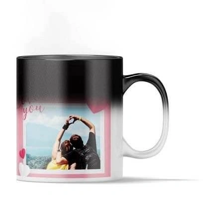 This mug is black and when HOT liquid is added it changes to white and reveals the photo underneath. Perfect gift for a friend or loved one.