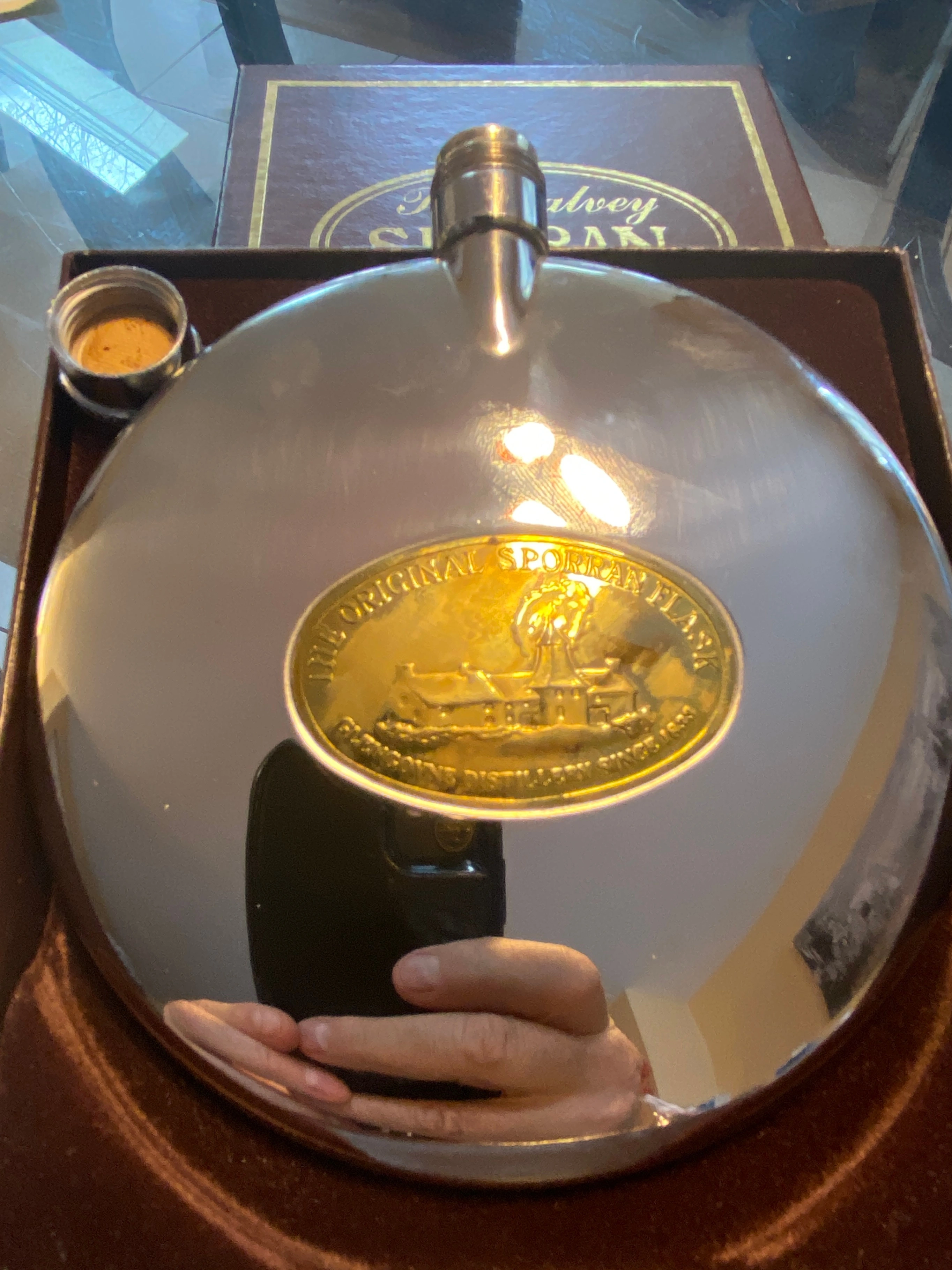 Selling a Dalvey Sporran Flask, the original from Scotland! It comes with its box. A stylish and classic accessory. As shown, as is.
