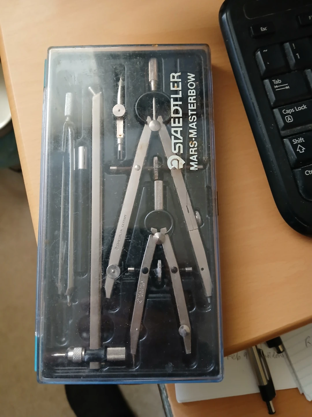 This is a STAEDTLER MARS-MASTERBOW drawing compass set. It includes a compass, divider, and pencil attachment. All pieces come neatly organized in a carrying case. One piece is missing.