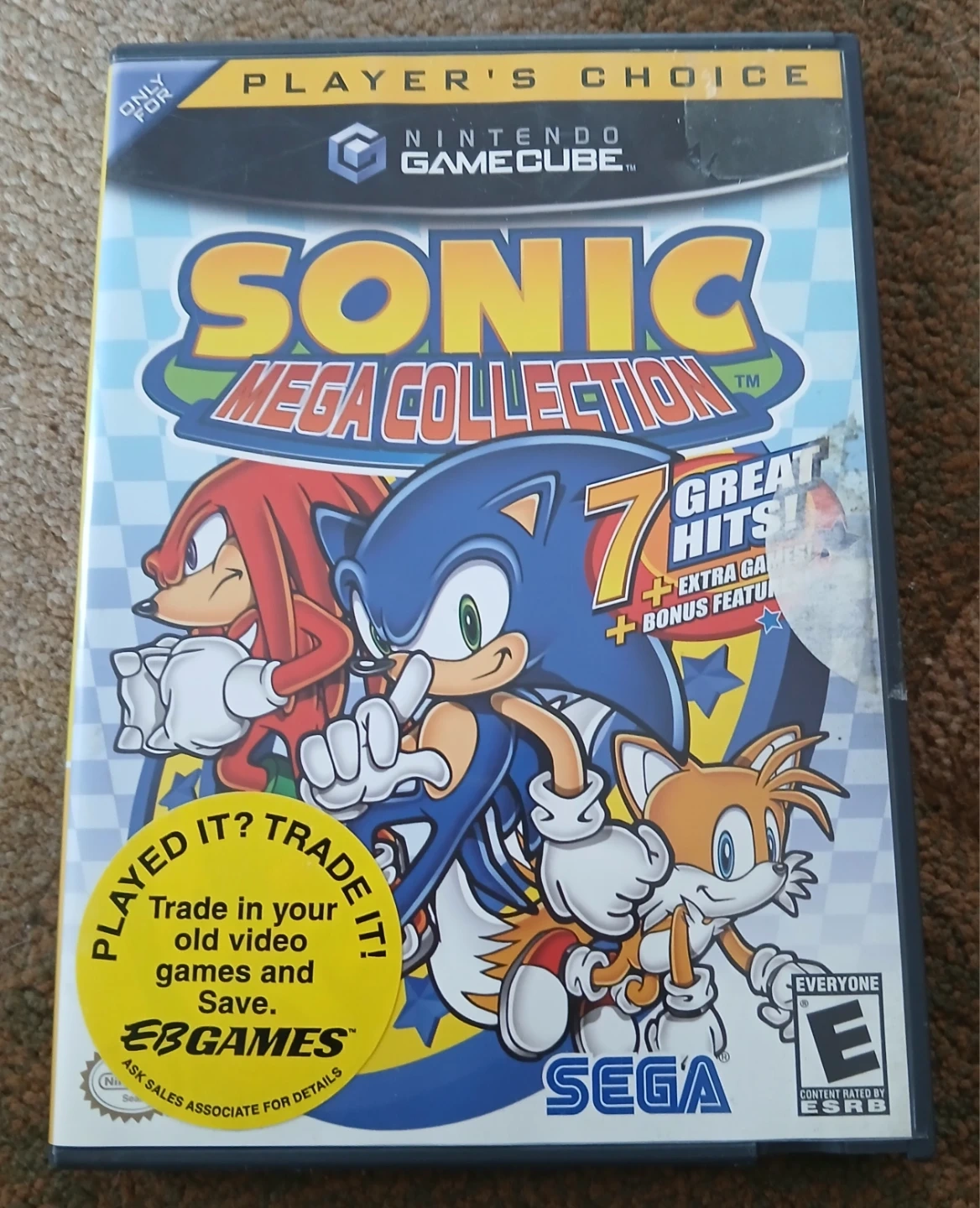 Sonic Mega Collection for Nintendo GameCube includes 7 great Sonic games. It features unlockable games, secrets, comic book covers, rare artwork, and more! This compilation is a must-have for any Sonic fan.