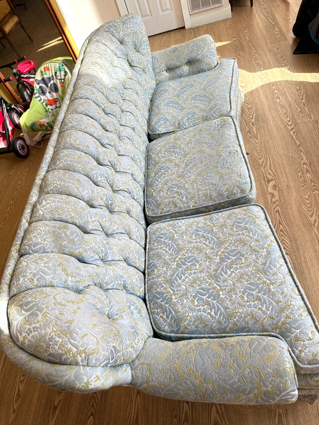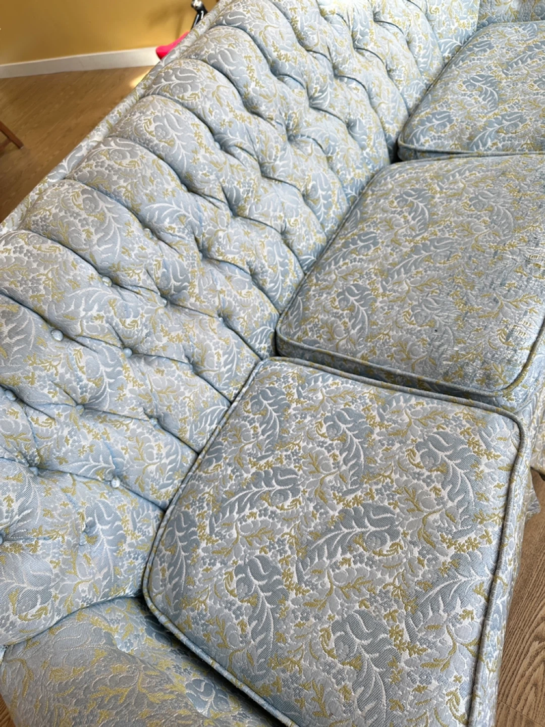 Elegant Vintage Tufted Blue & GoldSofa (CAN DELIVER)