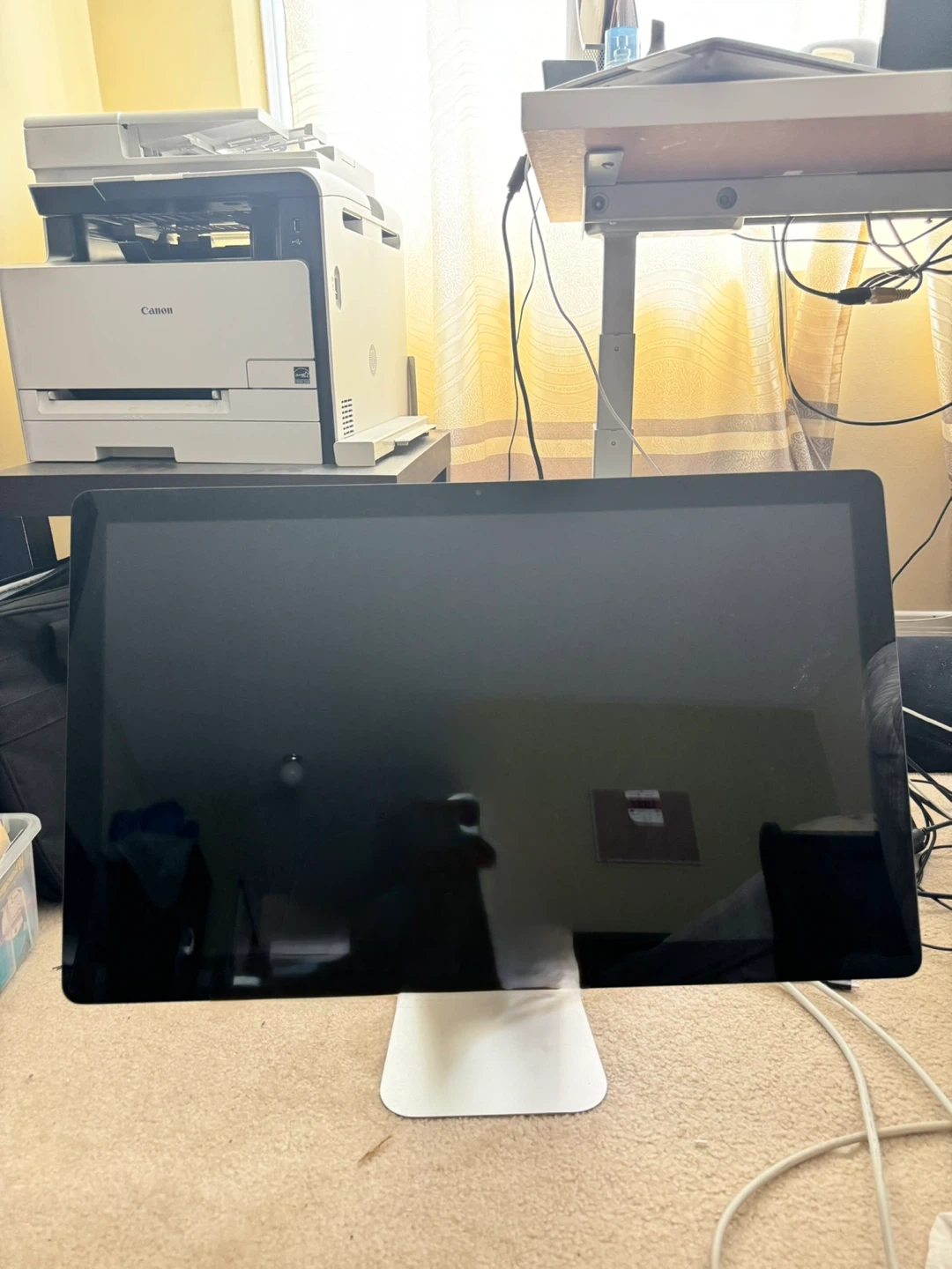 This is an Apple iMac desktop computer. It's a large display, perfect for home or office use. Includes the power cable.