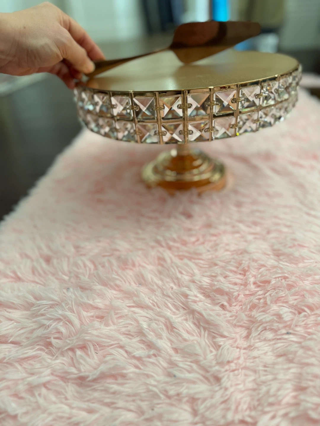 This elegant cake stand features a gold-tone metal top and base, adorned with sparkling crystal rhinestones (matches the votives that are listed)! We used this for our wedding as well and it was GORGEOUS!