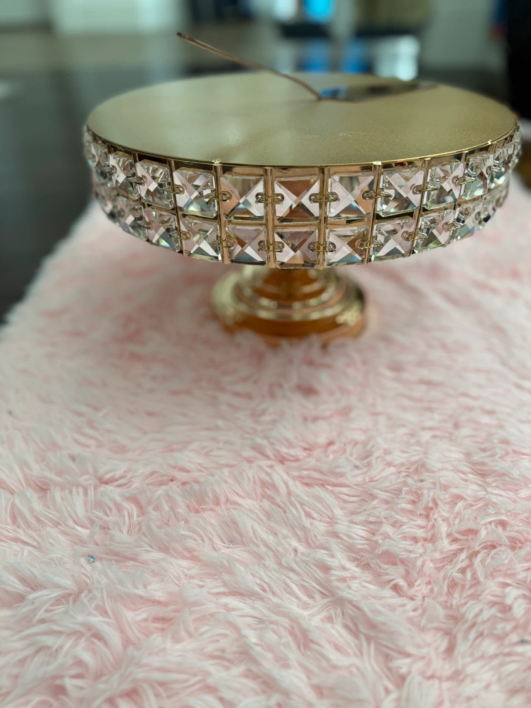 This elegant cake stand features a gold-tone metal top and base, adorned with sparkling crystal rhinestones (matches the votives that are listed)! We used this for our wedding as well and it was GORGEOUS!