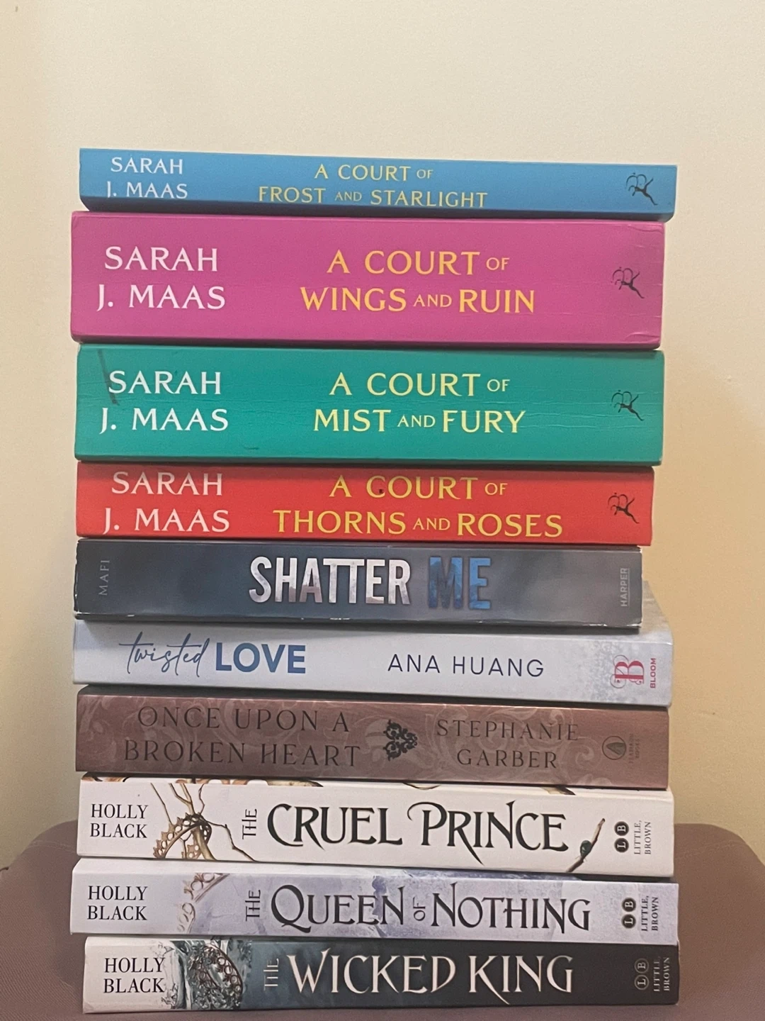 Bundle of popular fantasy and romance novels. Includes Sarah J. Maas's A Court series, Holly Black's Folk of the Air series, Ana Huang's Twisted Love, and Stephanie Garber's Once Upon a Broken Heart. Just trying to get some money for school! Make me the best offer! Will sell all court of thorns and roses series for $30 and all cruel prince for $20. Cash only.