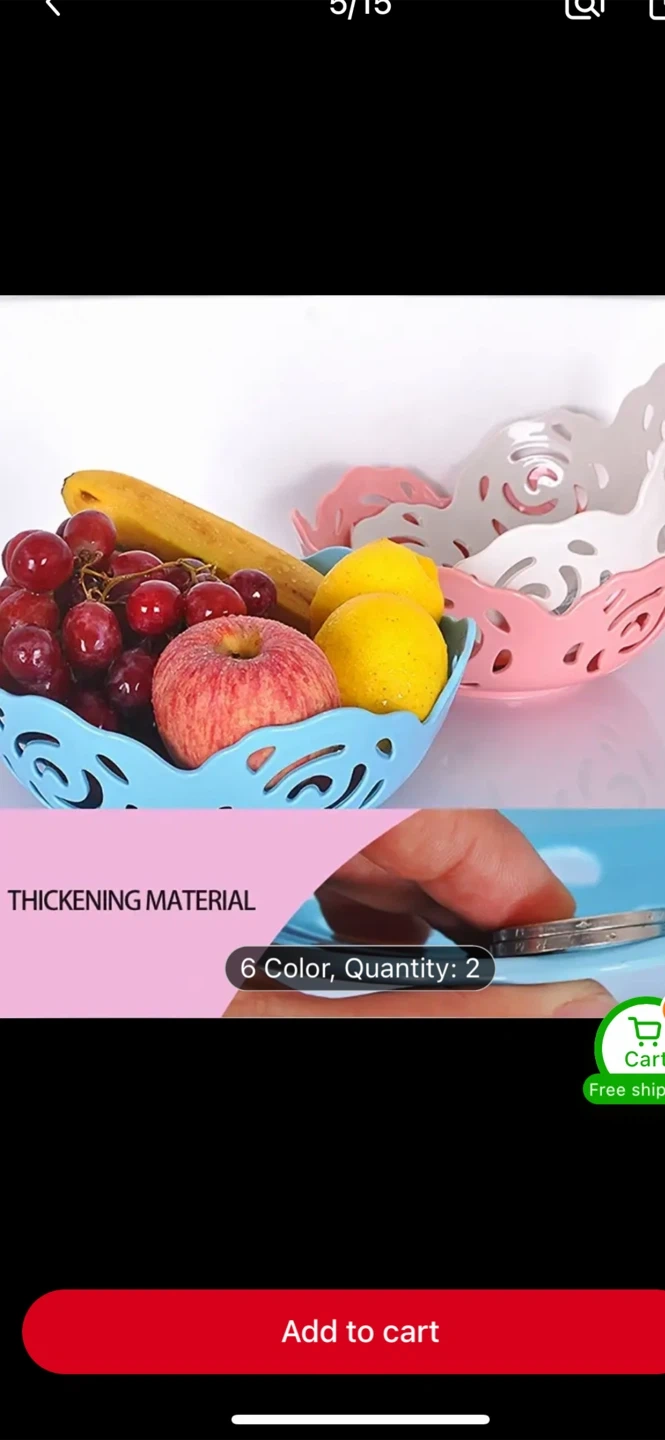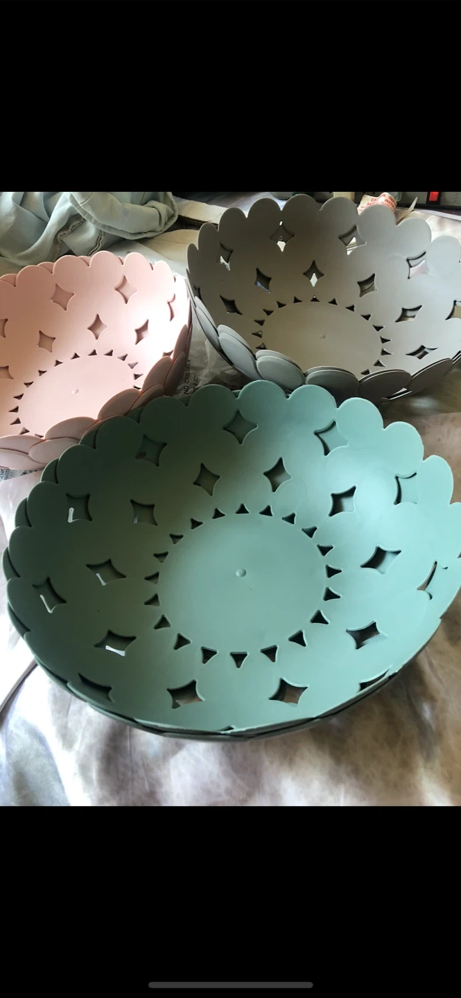 These decorative plastic fruit bowls come in a set of two and feature a beautiful cut-out design. Their lightweight construction makes them easy to move. They're perfect for holding fruit, snacks, or small items on your kitchen counter or dining table.