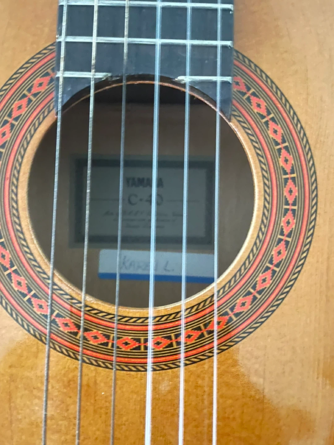This is a Yamaha C-40 classical guitar. It's a full-size instrument with nylon strings. Perfect for beginners or those looking for a comfortable acoustic sound. Firm price.