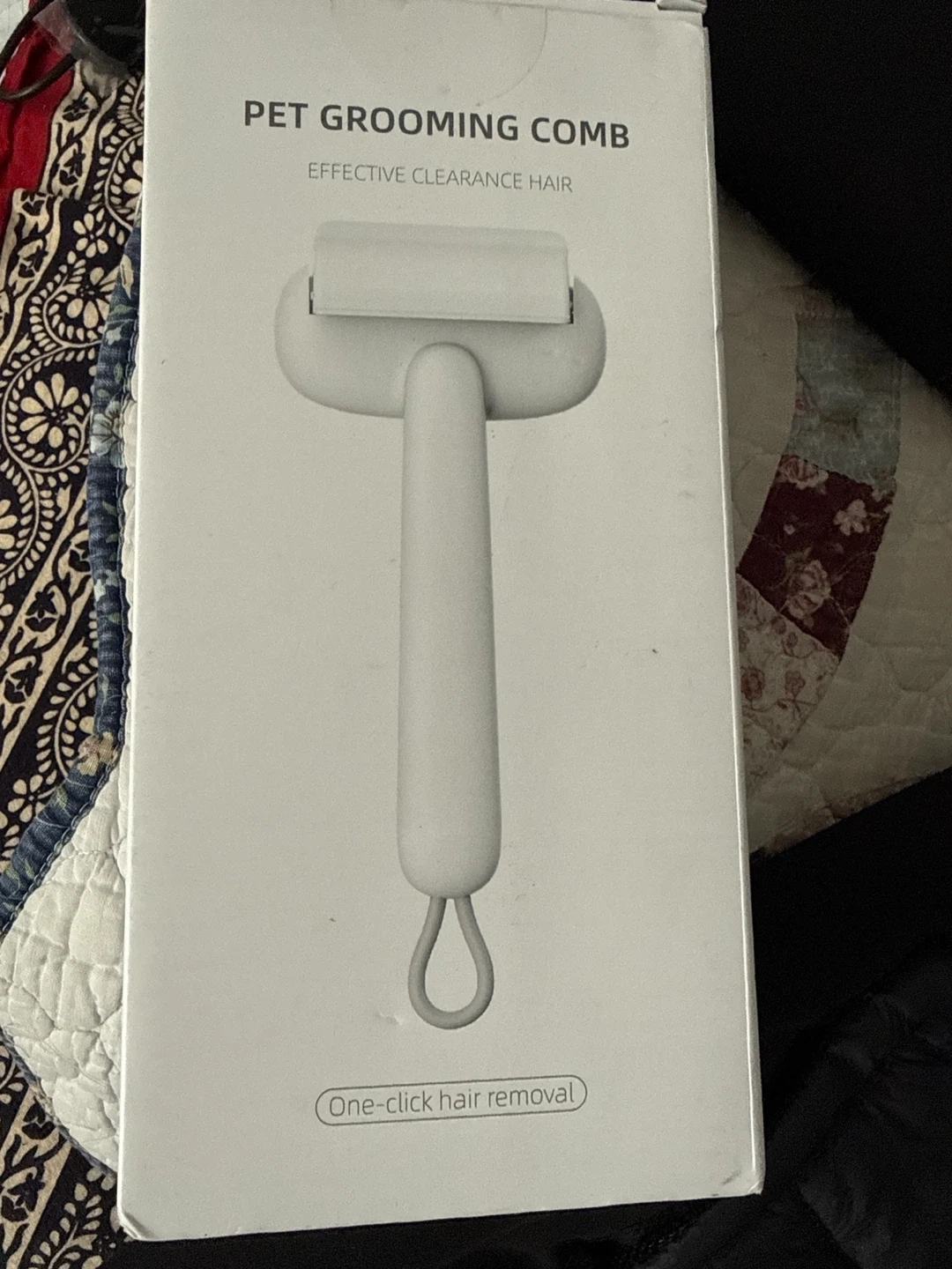 This is a pet grooming comb designed for effective hair removal. It features one-click hair removal for easy cleaning. The comb can comb pet hair safely and smoothly. A special electrostatic cloth at the tail helps remove fine hair.