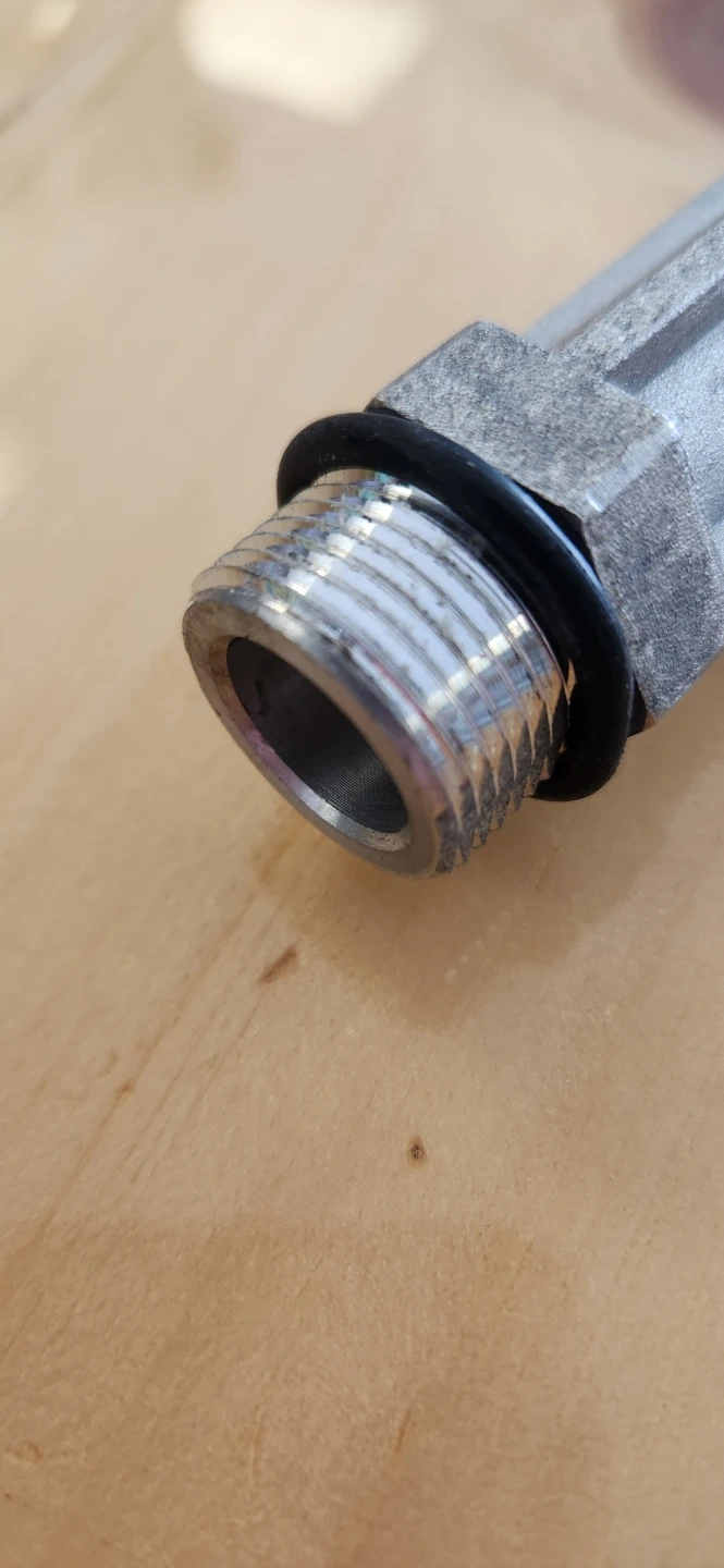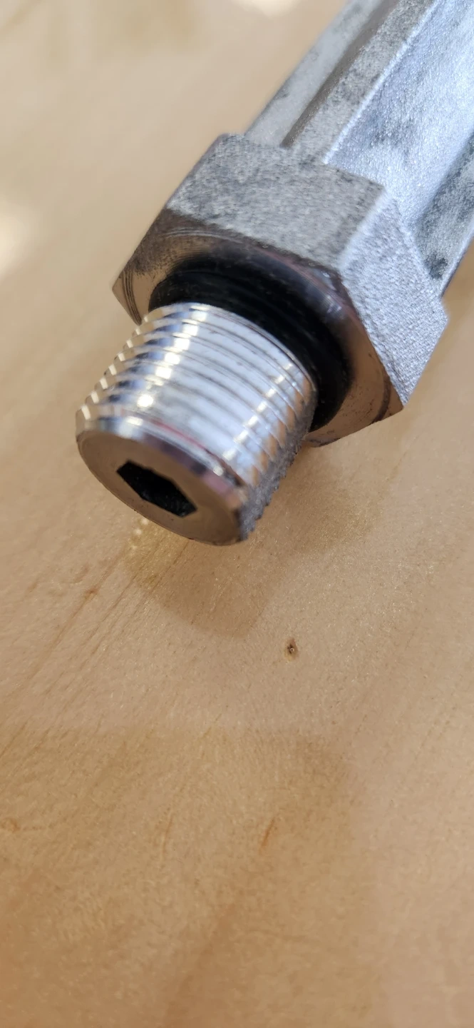 This inline water filter is made of aluminum. It measures 4 3/8 inches in length and 7/8 inches in diameter. The filter includes O-rings for a secure fit. This piece would be useful for someone looking to install a simple filtration system.