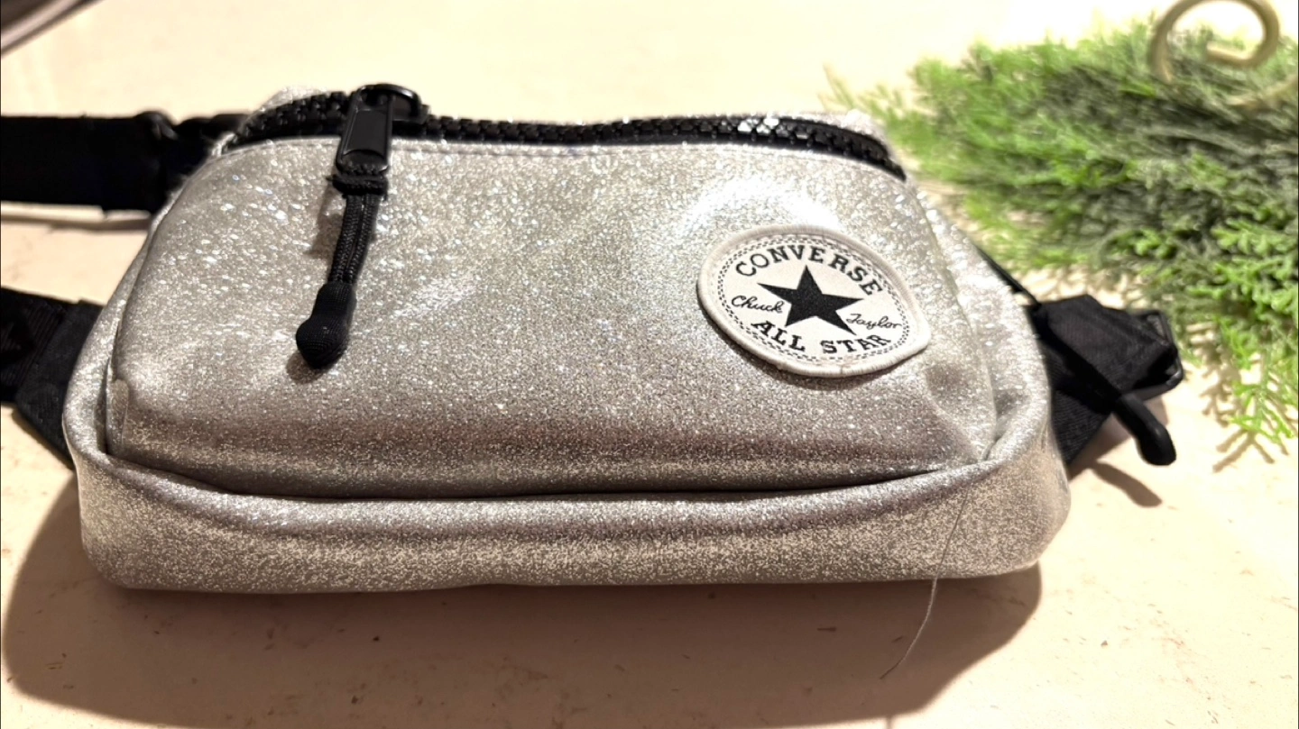 Sparkly silver Converse fanny pack.