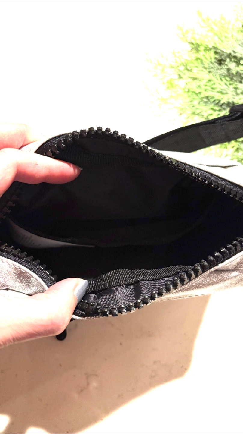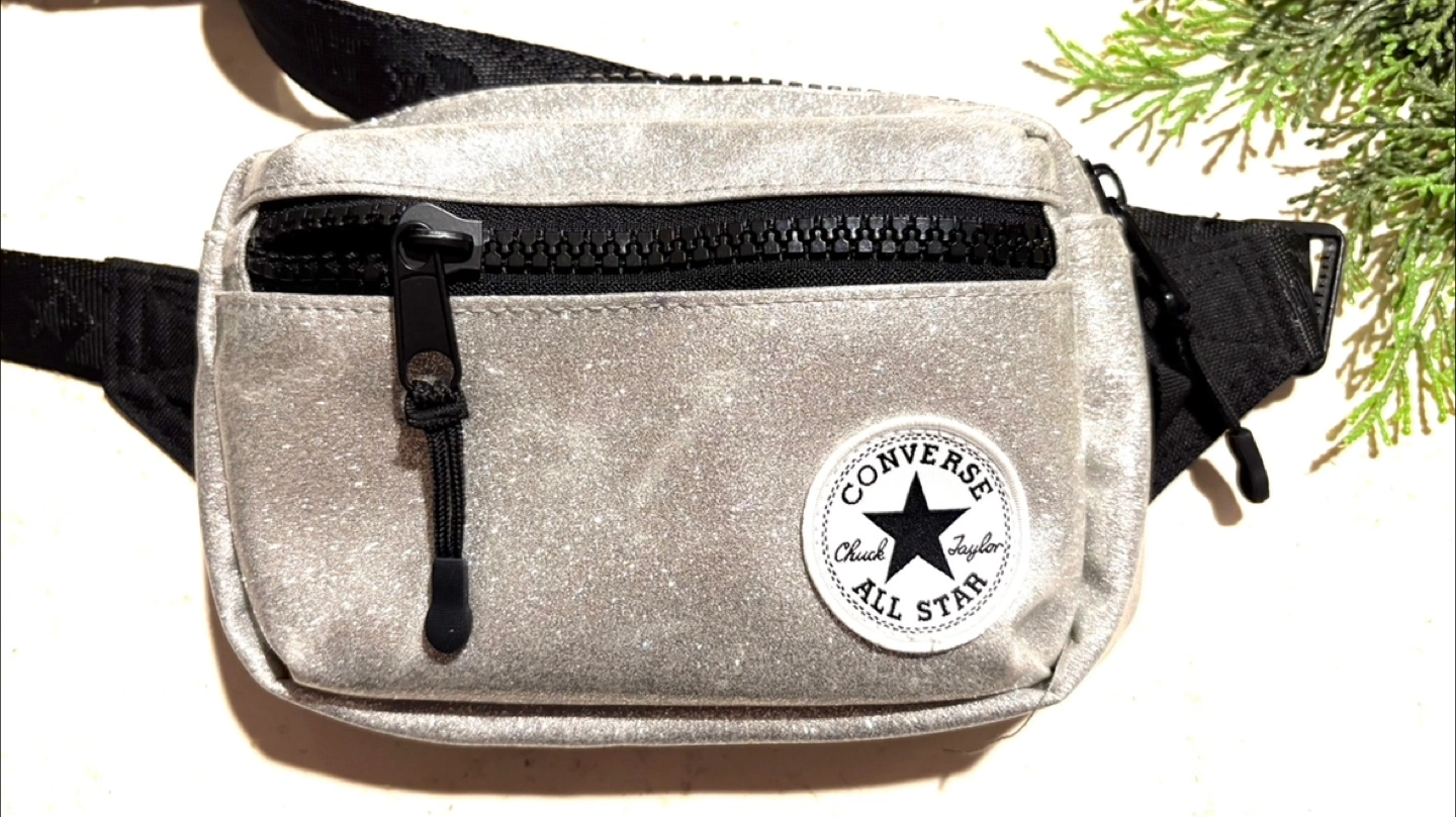 Sparkly silver Converse fanny pack.