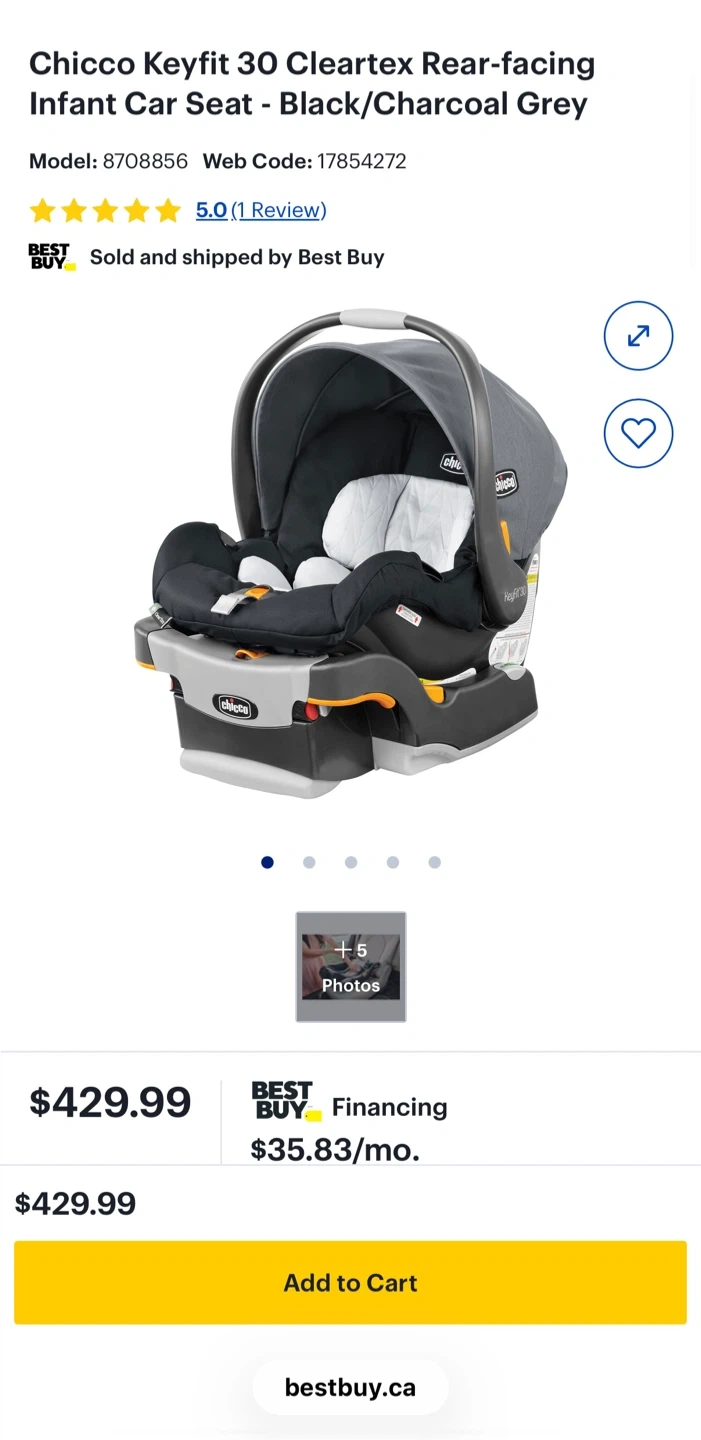 * Rear-facing infant car seat is easily placed in the stay-in-car base and compatible Chicco strollers for effortless usage