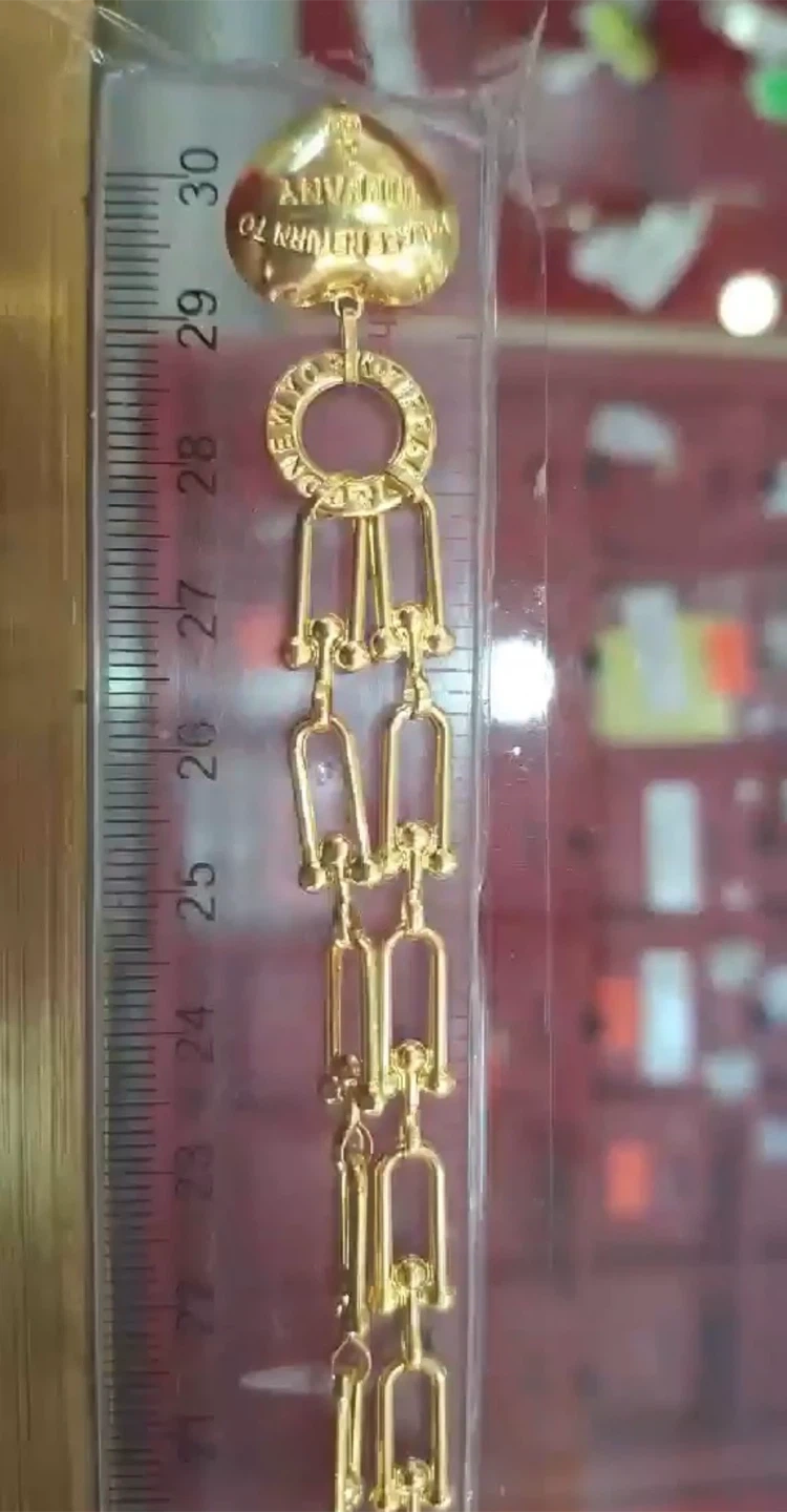 This is a classic Tiffany & Co.necklace It features the iconic 'Return to Tiffany' heart charm and a chain with signature links. The gold-tone metal gives it a shiny finish. It's a timeless accessory for any jewellery collection!