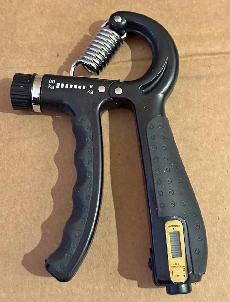 This is a heavy-duty adjustable hand grip strengthener, perfect for building forearm strength, improving grip, or injury recovery. It features a built-in mechanical counter so you can track your reps easily.