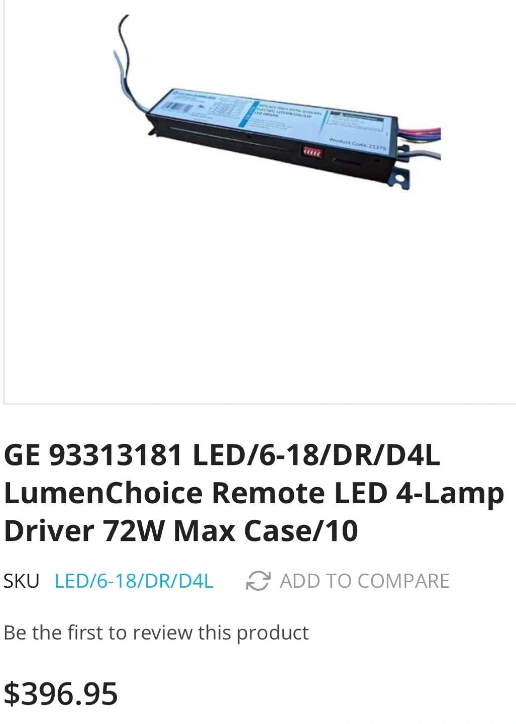 GE Remote LED 4-Lamp Drivers+Electrical Components.