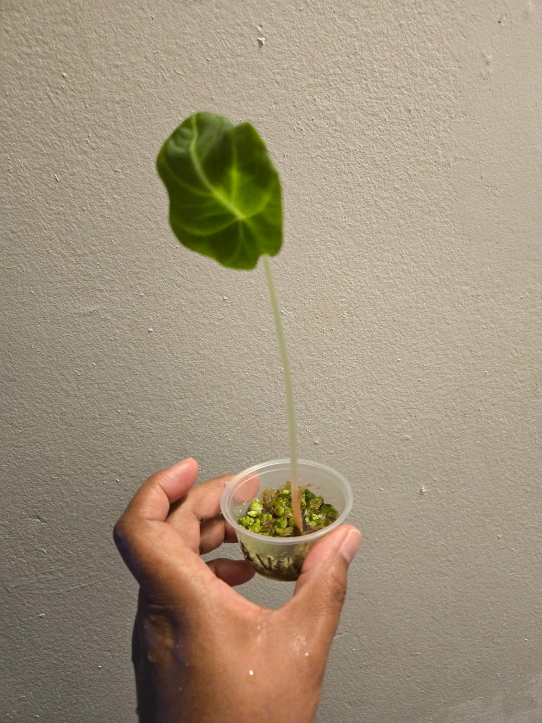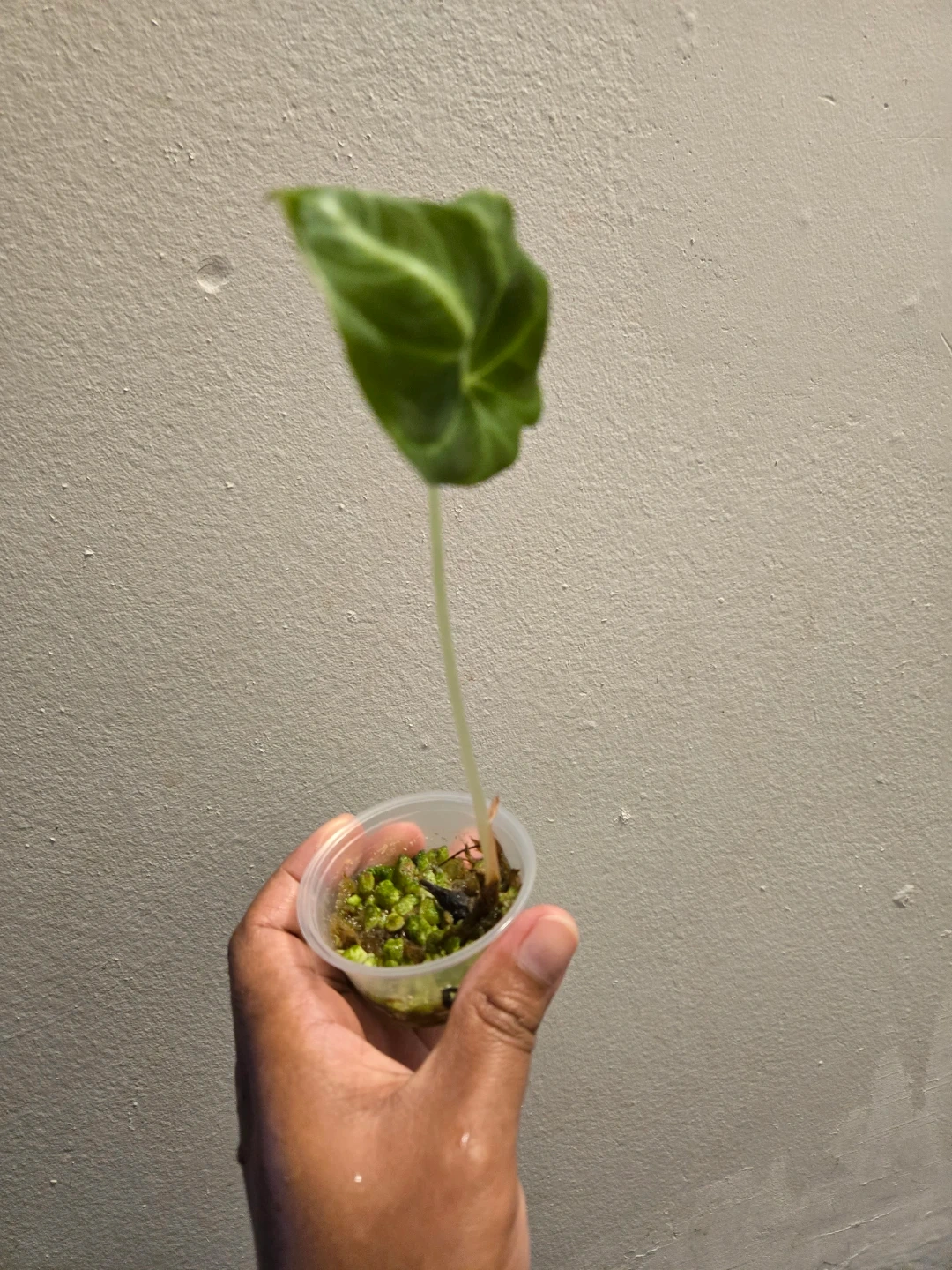 This plant is currently in a small plastic cup with a mossy/perlite substrate. ✨️🌿