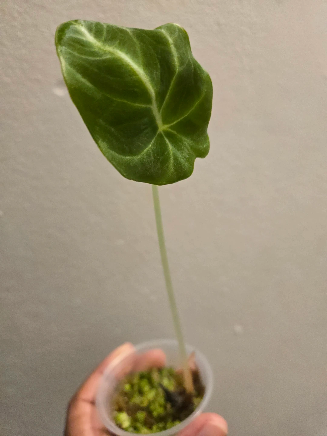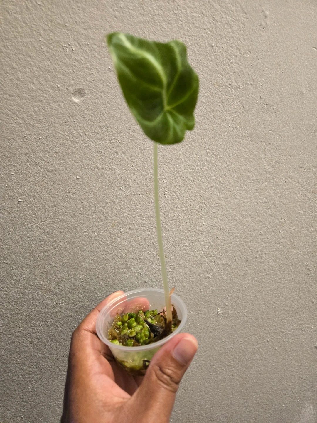 This plant is currently in a small plastic cup with a mossy/perlite substrate. ✨️🌿